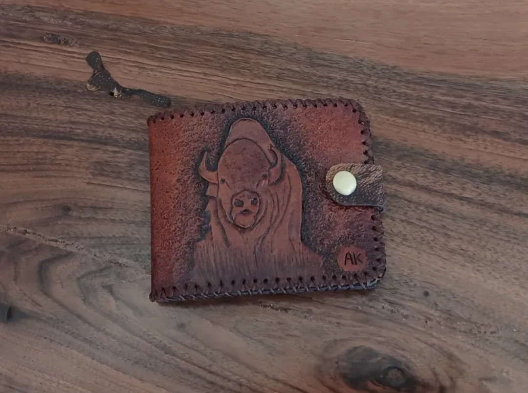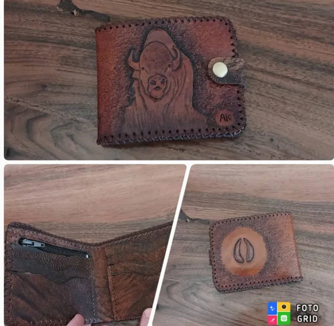 کیف جیبی قلمزنی شده بر روی چرم طبیعی و باکیفیت و کاملا دست دوز، در ساخت این کیف از نخ ضخیم موم زده مخصوص دوخت استفاده شده است، دارای هفت جیب جای کارت ویک جیب زیپ دار و یک جیب جای اسکناس، یک صنایع دستی ماندگار و متفاوت