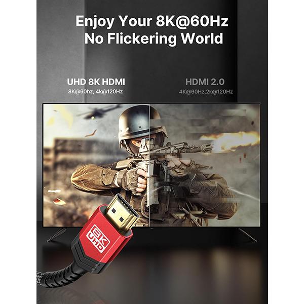 (کابل HDMI 8K): پشتیبانی از 8Kesam60Hz، 4Kesam120Hz، پهنای باند 48 گیگابیت بر ثانیه، HDR10، VRR، QFT، QMS، eARC، HDCP 2.2؛ سازگار با HDMI 2.0 و نسخههای قبلی می باشد
