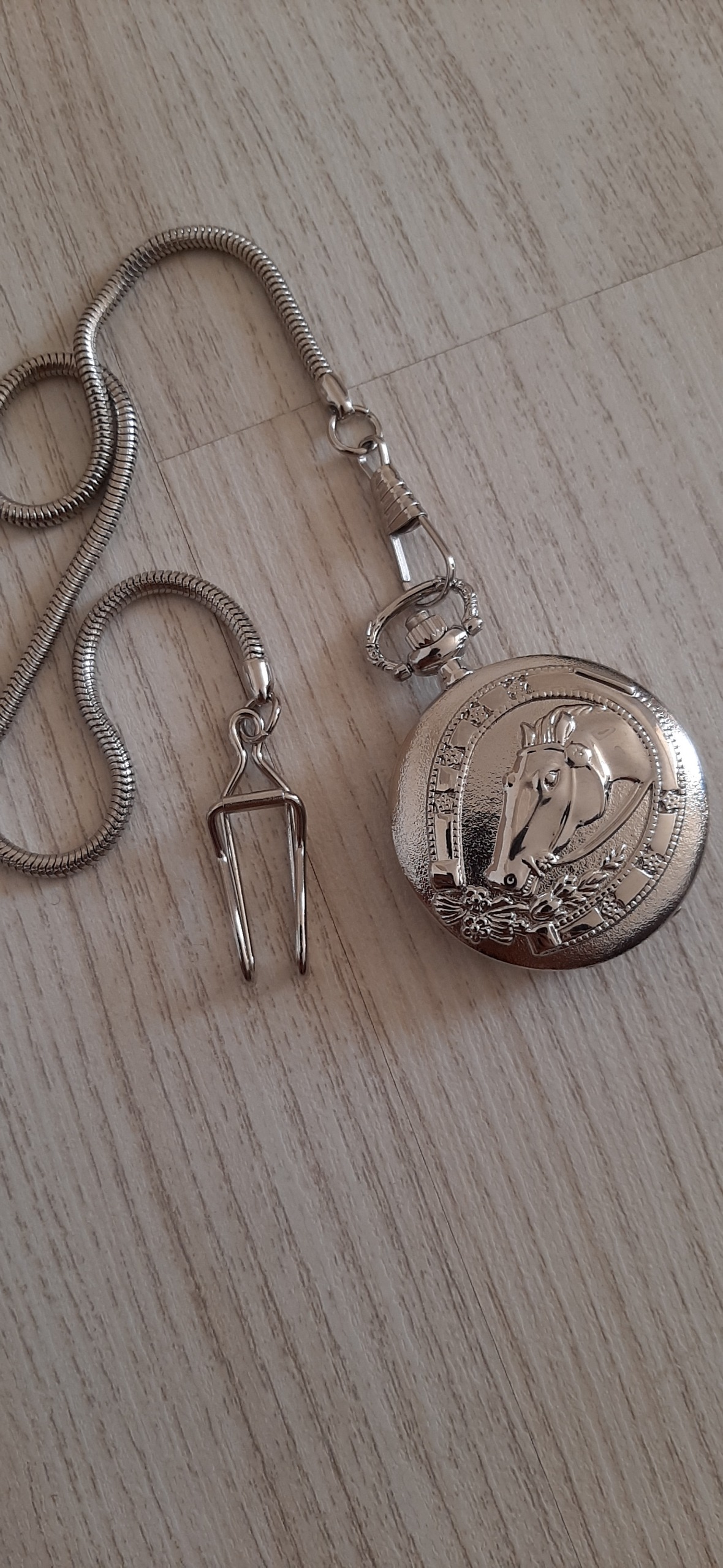 ساعت جیبی اریکس طرح اسب با موتور اصل ژاپن و رنگ استیل ثابت