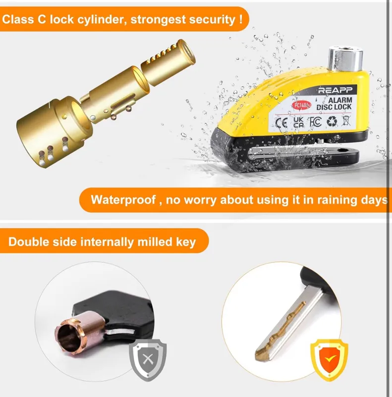 کابوس دزد قفل دیسکی دزدگیر REAPP برای ضد سرقت موتورسیکلت و دوچرخه در فضای داخلی و خارجی ضروری است. حسگر حساس داخلی، به محض تشخیص لرزش یا حرکت، صدایی با قدرت 110 دسیبل منتشر میکند تا سارقانی که سعی در جابجایی وسیله نقلیه شما یا باز کردن قفل دارند را متوقف کند.
