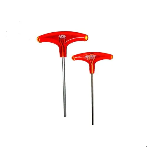 سری آچار آلن شش گوش دسته T با دسته پلاستیکی آ-کرافت، ساخته شده از فولاد بسیار مقاوم S2 و دارای سطح با رنگ مسی برای باز کردن انواع پیچها میباشد. دسته تی شکل این آچار برای وارد کردن نیرو بسیار ایده آل است. این مجموعه شامل 6 عدد آچار آلن از سایز 2.5 الی 8 میلی متر میباشد.