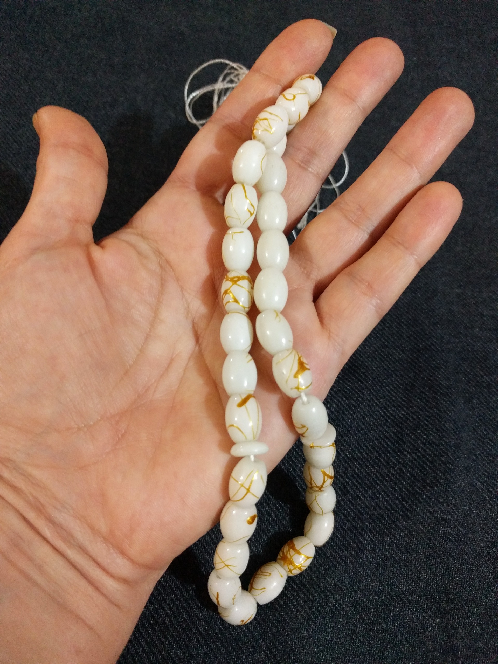 تسبیح 33 دانه صدفی رنگ رگه دار
