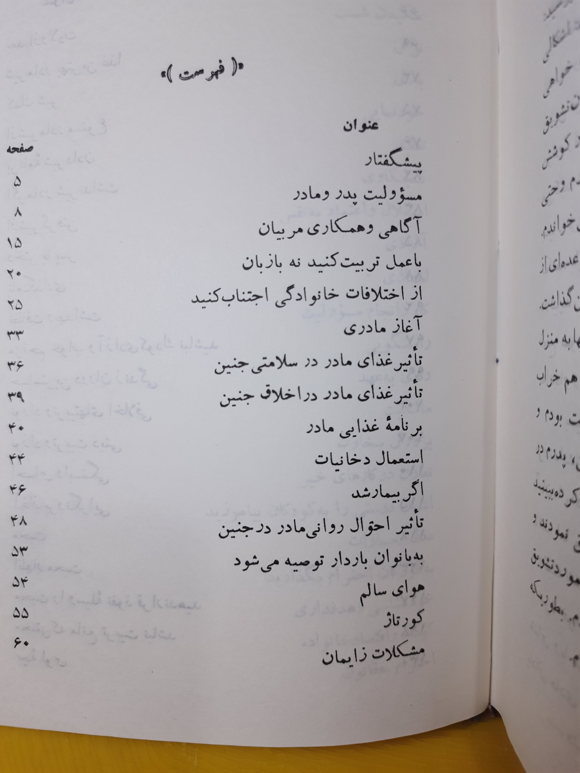 کتاب قد* یمی میباشد قسمتهای از جلد زدگیهای جزئی دارد /این کتاب مشتمل بر مطالب متنوعی پیرامون مسائل تربیت اسلامی است که مهمترین عناوین آن عبارتند از:تأثیر غذای مادر در سلامتی و اخلاق جنین- تأثیر احوال روانی مادر در جنین- شیر مادر بهترین غذا-نامگذای- نوزاد