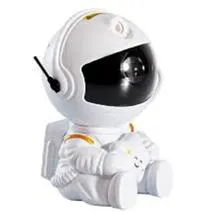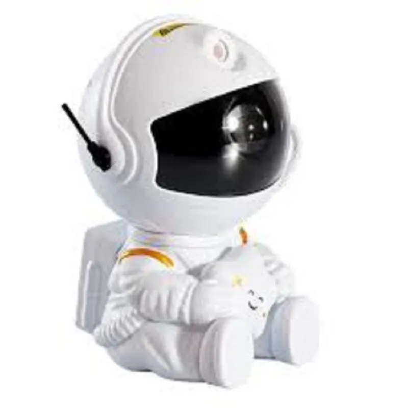 پروژکتور کهکشانی طرح فضانورد نشسته یک چراغ خواب با قابلیت پخش افکت تصویر زنده کهکشانی بر روی سقف و دیوار اتاق است که به همراه افکت لیزر ستاره ای حس یک سفر کهکشانی را قبل از خواب به شما میدهد . تلفیق همزمان تصویر زنده کهکشانی و لیزر ستاره ای جذابیت اتاق خواب