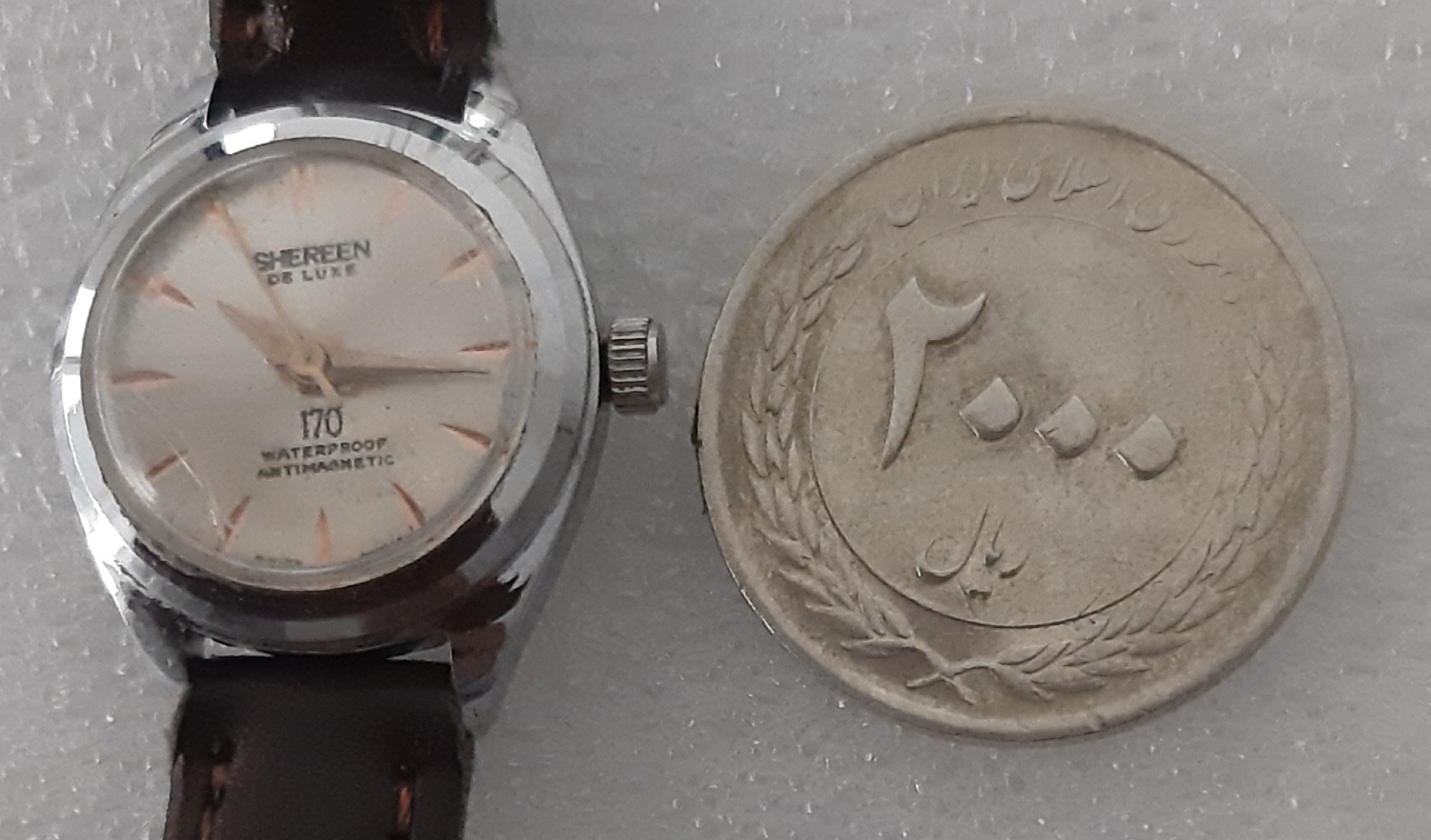 اندازه کوچیک و سایز زنانه، کوکی سوئیسی سوئیس مووت محصول مشترک با هنگ کنگ، درب پشتش هنگکنگی هست،طلقش اون پایین روساعت 7  ی کوچیک ترک داره، که خاطر فابریکی بودن عوض نشد