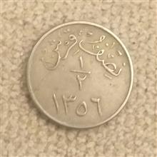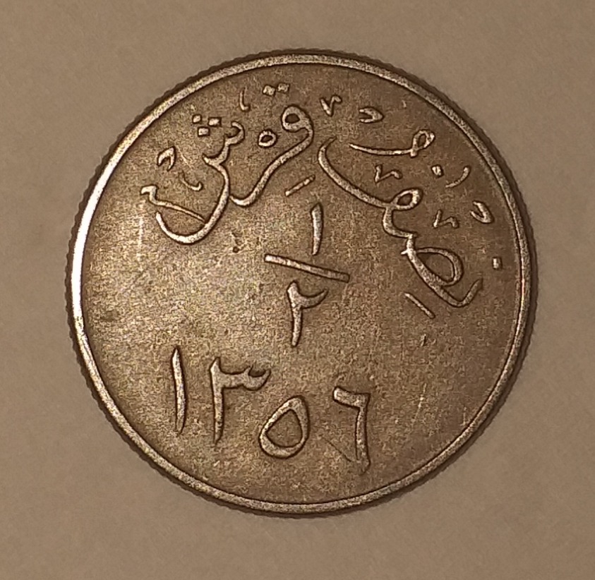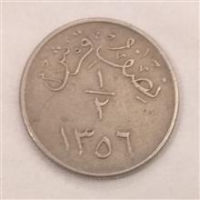 سکه نصف قرش عربستان سعودی 1356 (1934 میلادی )  ، کمیاب و ارزشمند با کیفیت خوب مطابق تصاویر