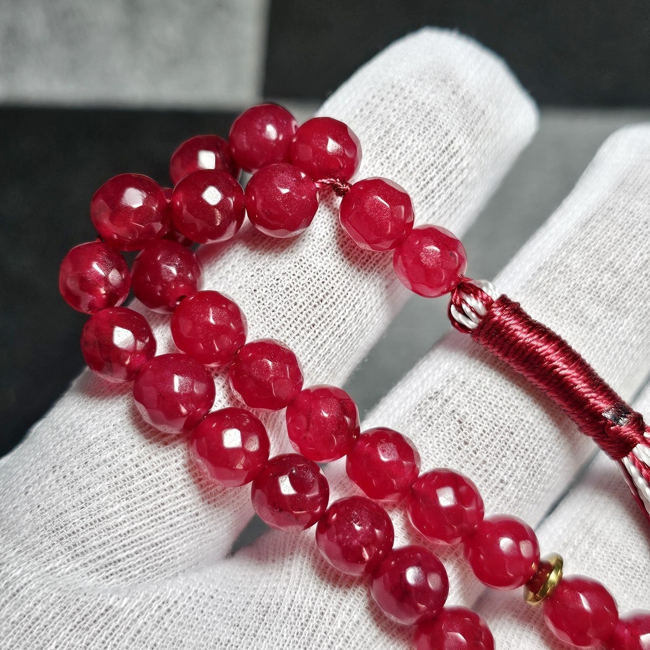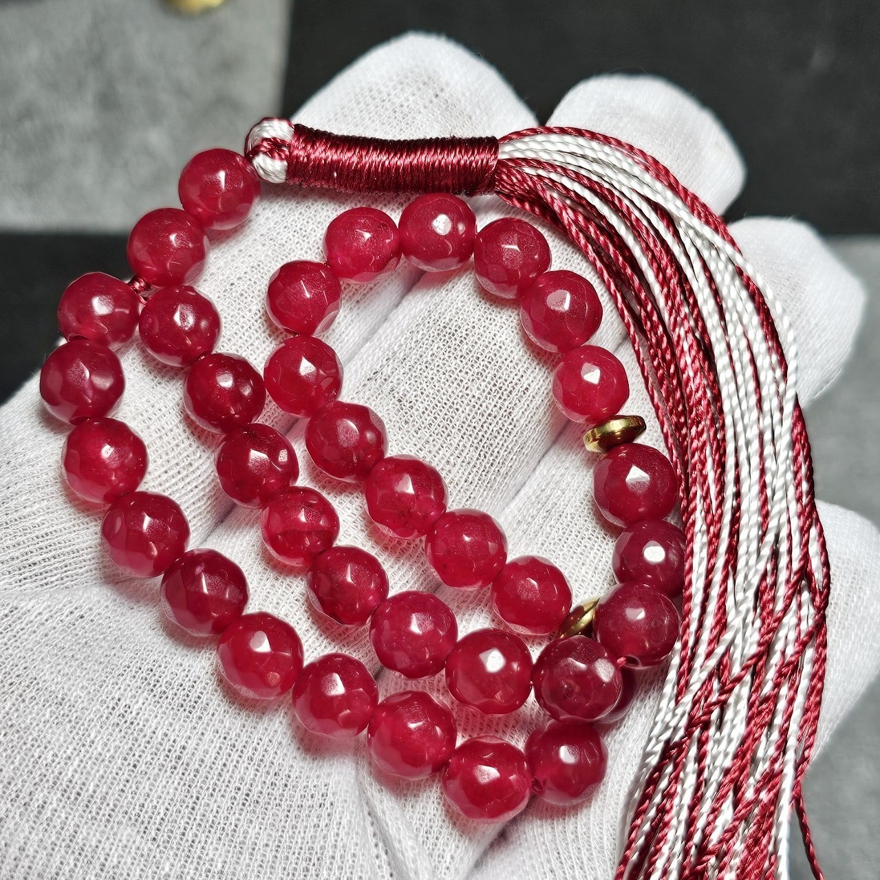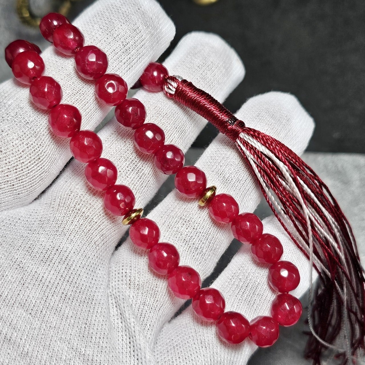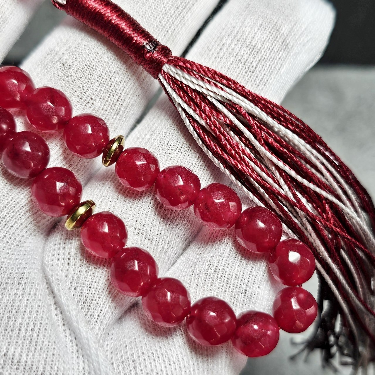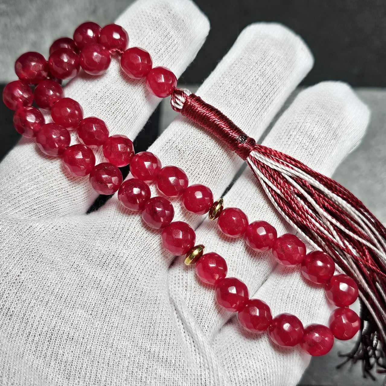 تسبیح 33 دانه سنگ جید یاقوتی معدنی