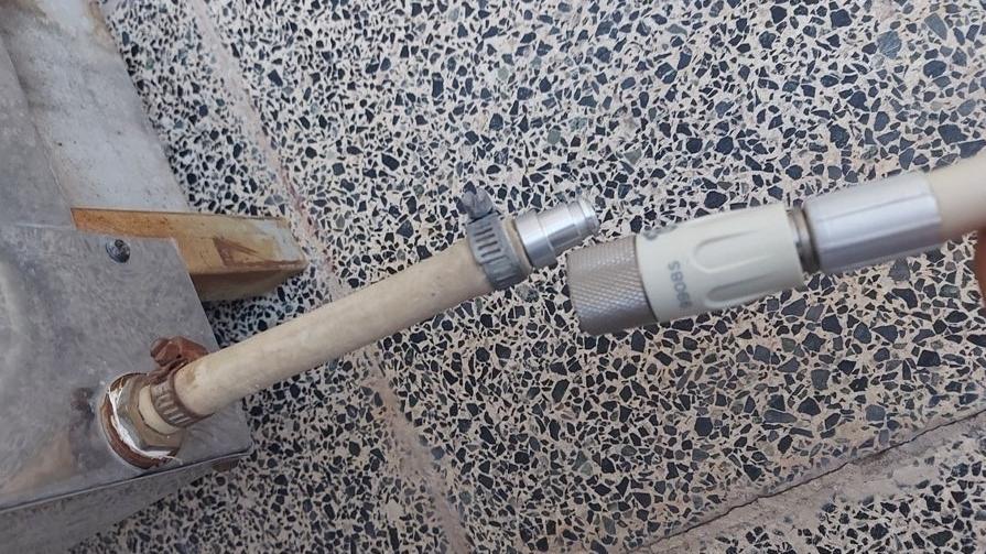 عکس 5 نحوه اتصال شیلنگ فابریک رو به ورودی بخاری ژاپنی نشون میده که همانطور که دیده میشه ورودی بخاری ژاپنی دقیقا با ورودی سمت راست این رابط یکی هست