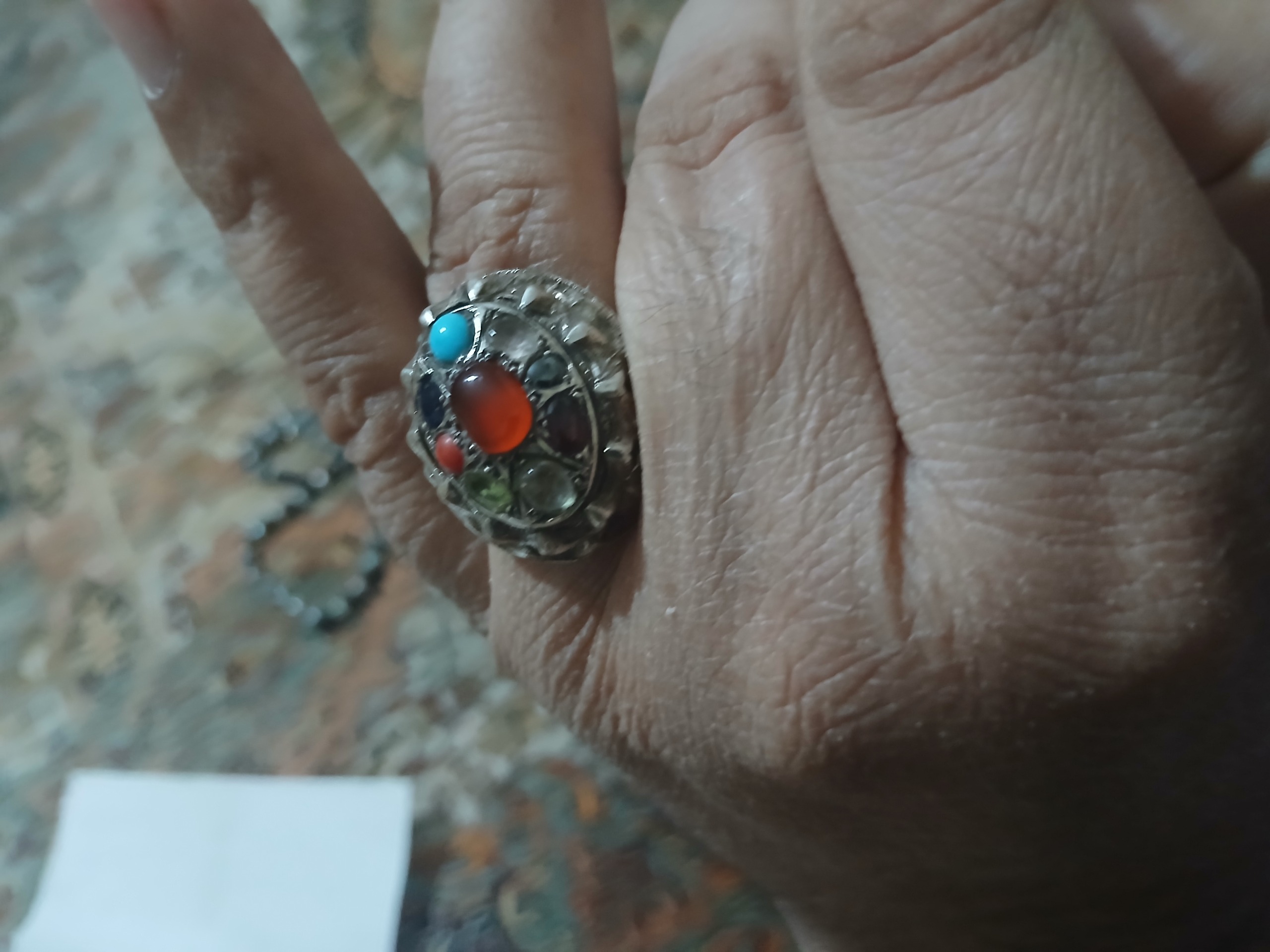 سلام انگشتر نقره 925 با تمام سنگ ها اصل و معدنی فروش با تست اصیل بودنش هست و وسط سنگ زیر سنگ چند سوره قرآن داخلش هست واقعا انگشتر اصیل هست و قدیمی و تمام سنگ ها رو داره و فروش