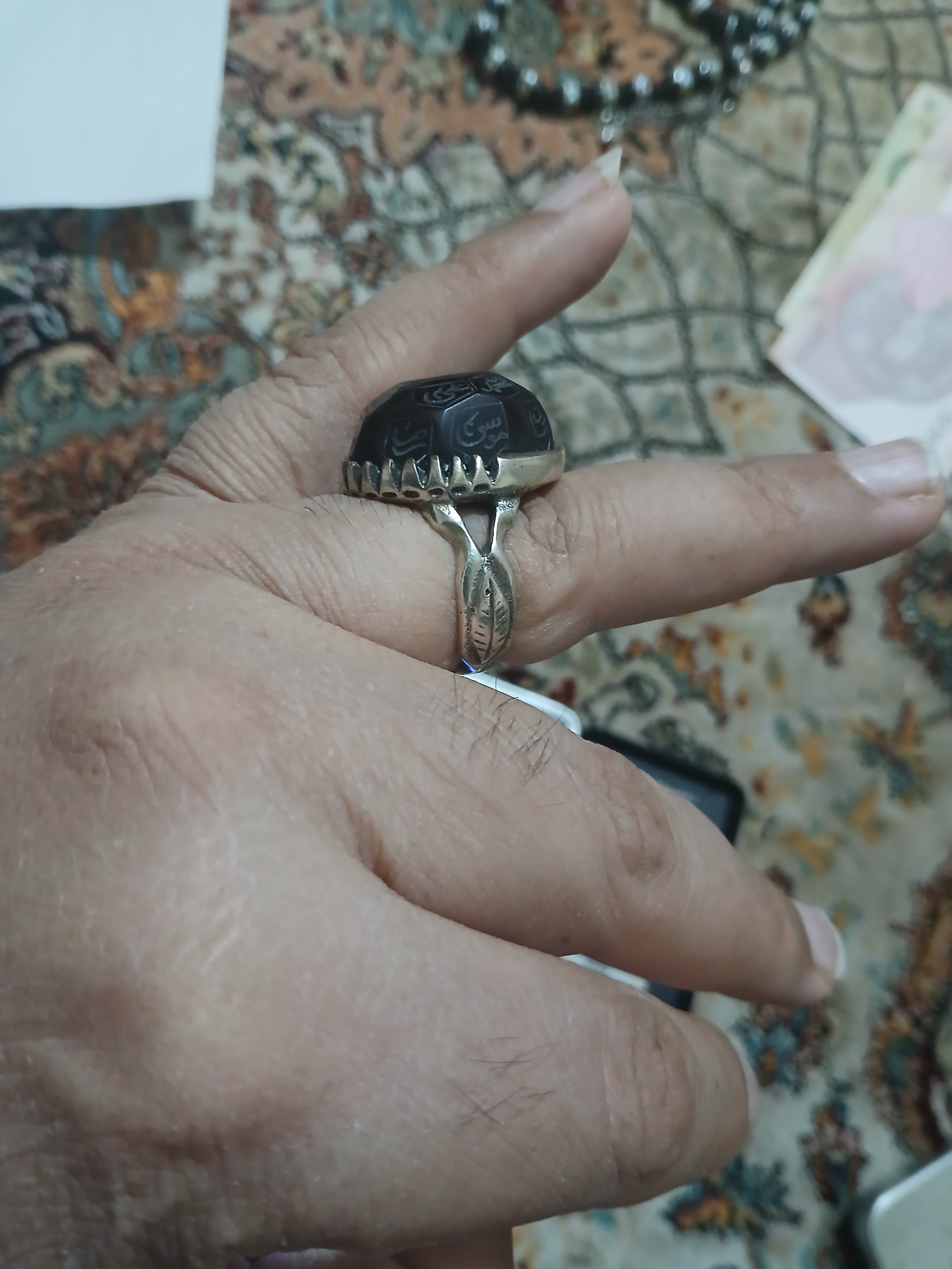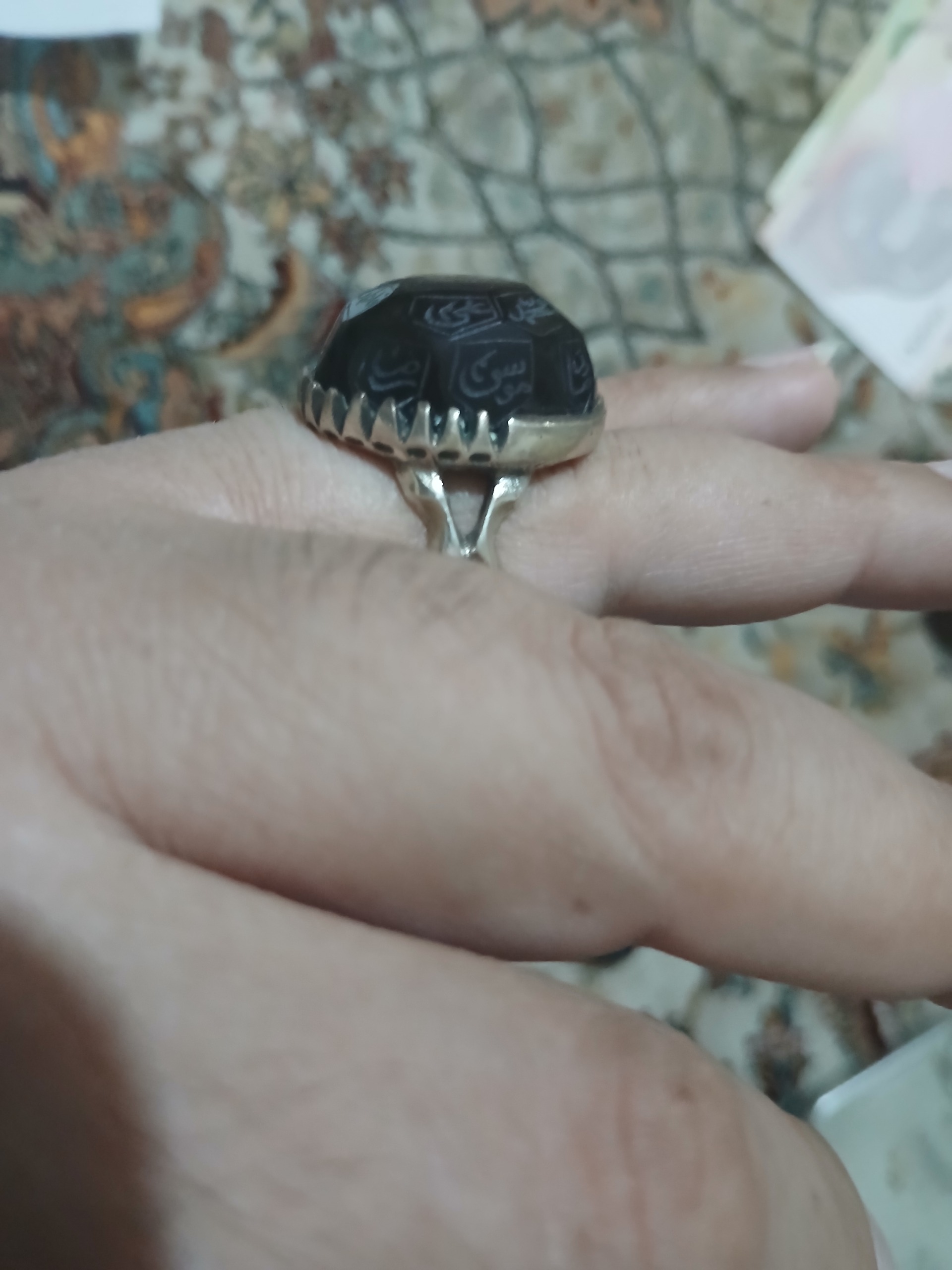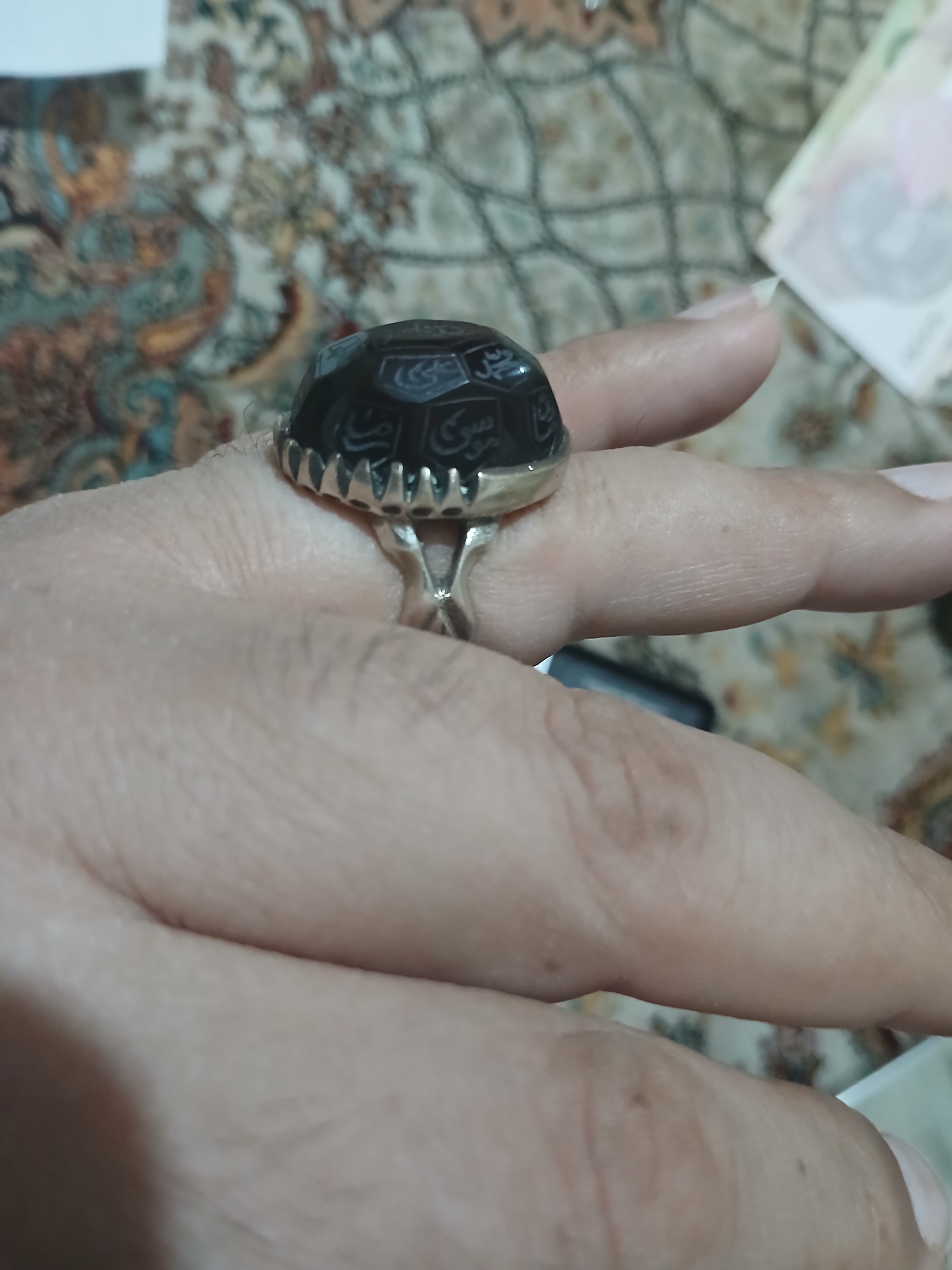 انگشتر عقیق جگر با اسم 12 امام و 5 تن