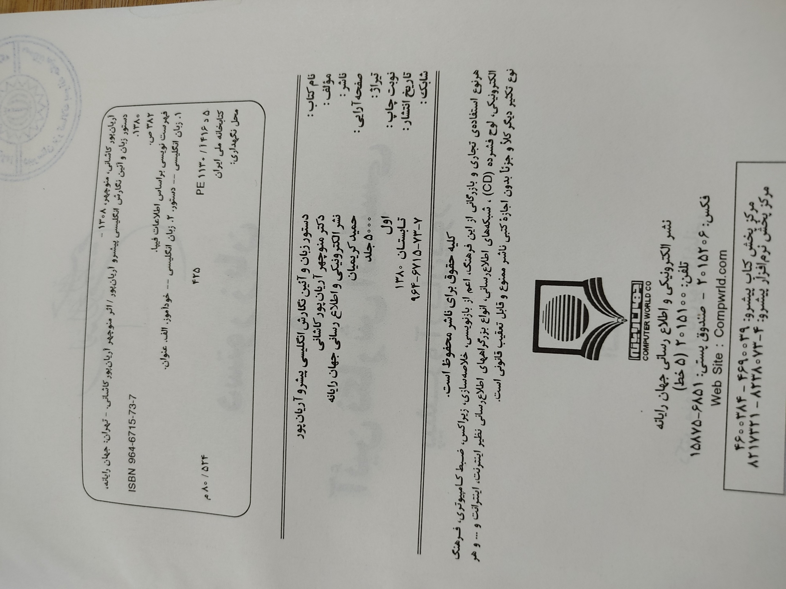دستور زبان و آیین نگارش انگلیسی آریان پور