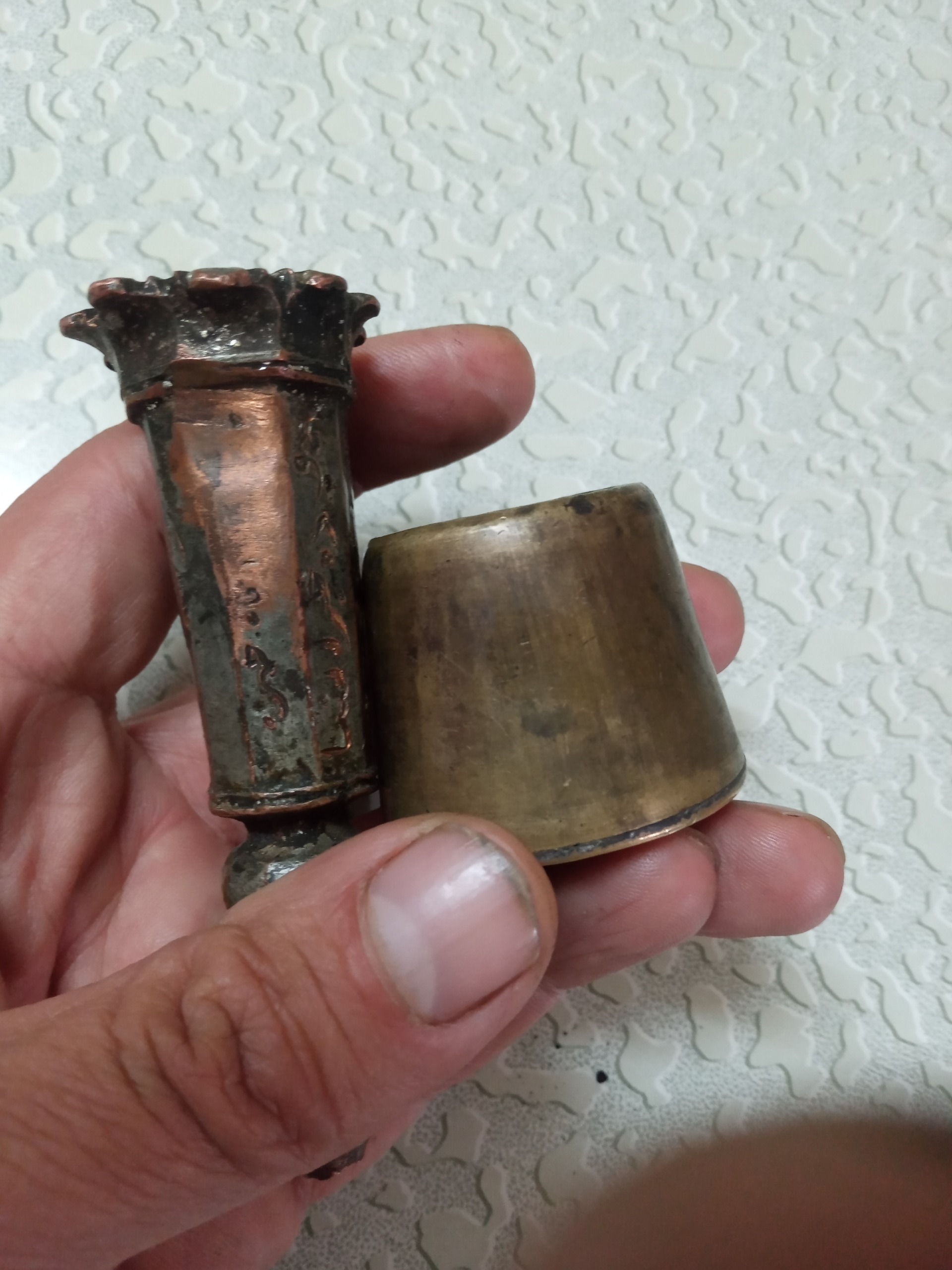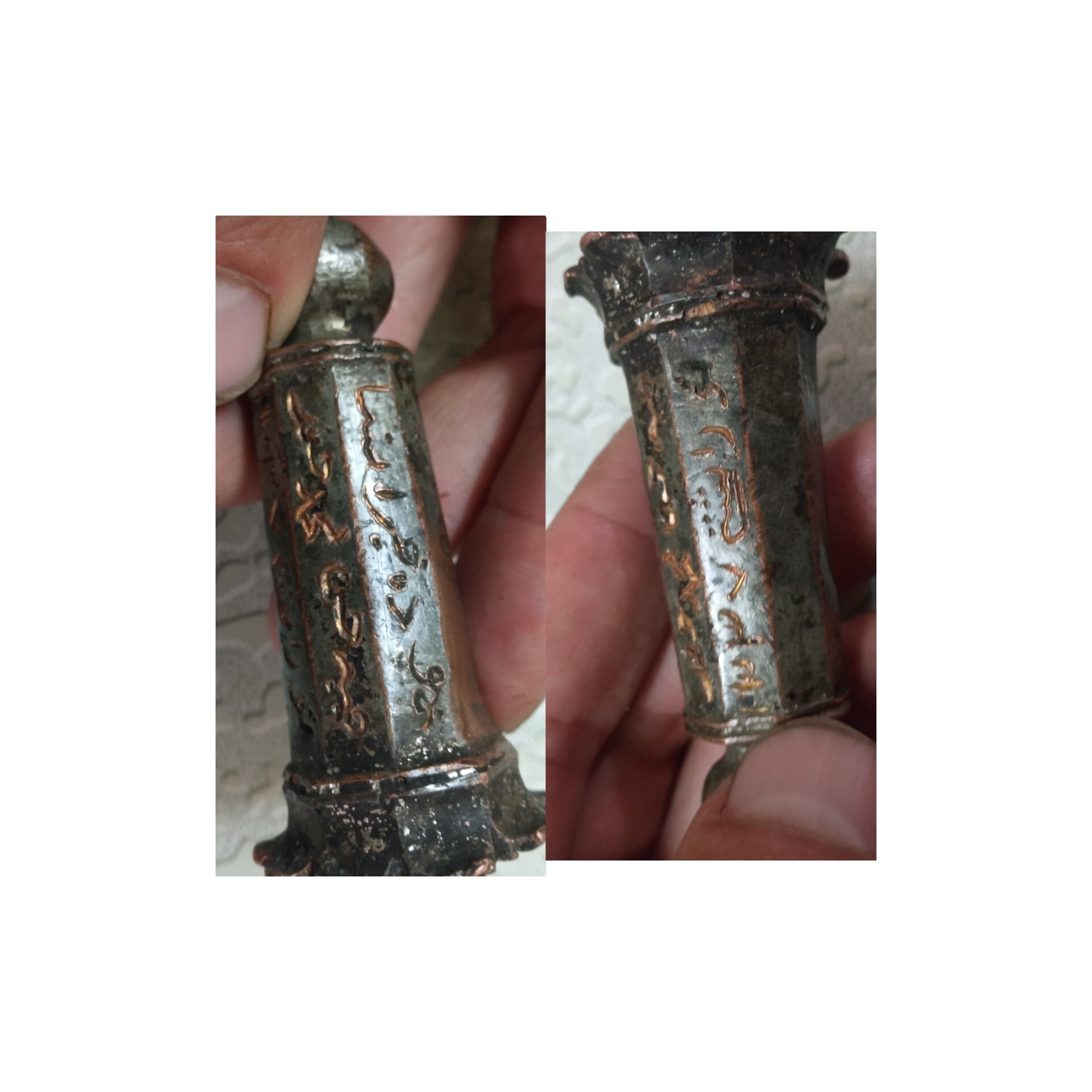 سری بالایی ظاهرا زیرش یکم شکستگی داره. نوشته هایی داره که من کامل نتونستم بخونم اسم و اینام روش هست. ولی تاریخ1337معلومه