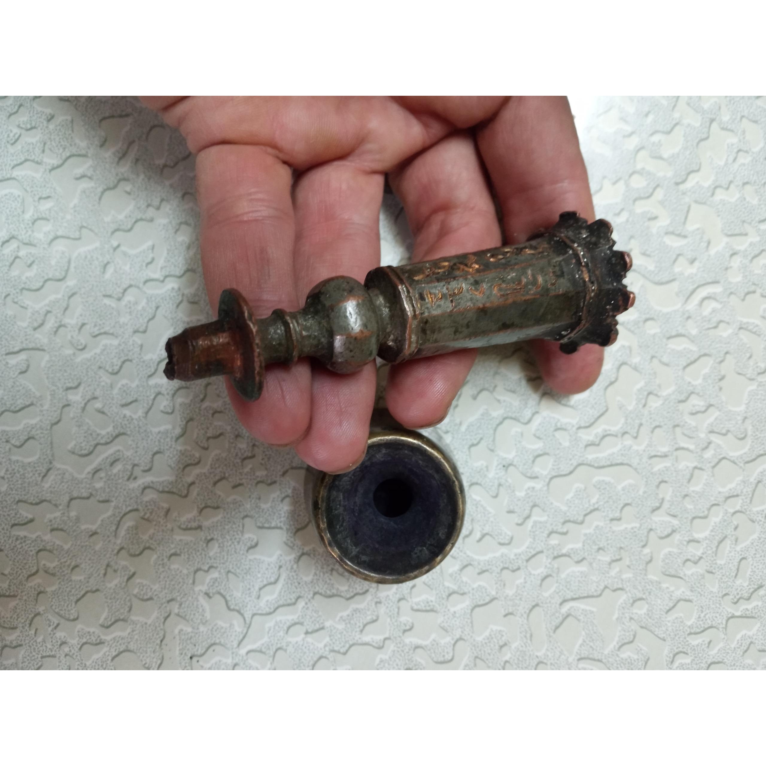 بالاش انگار جای شمع هستش. این اطلاعات رو دوستی بمن گفت. باز خودتون دقت کنید. هنوز جوهر خشک شده داخل قسمت پایینی هست. ارتفاع 11سانته. قطرش حدود 3سانت. باز سوالی بود درخدمتم