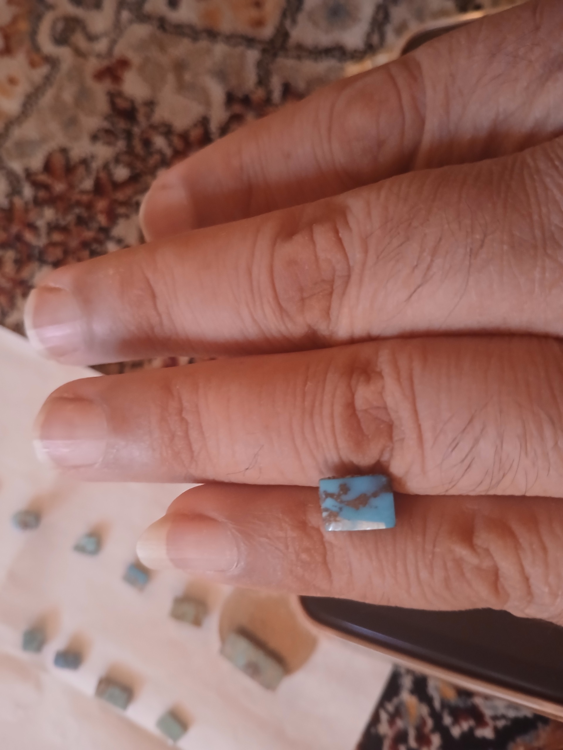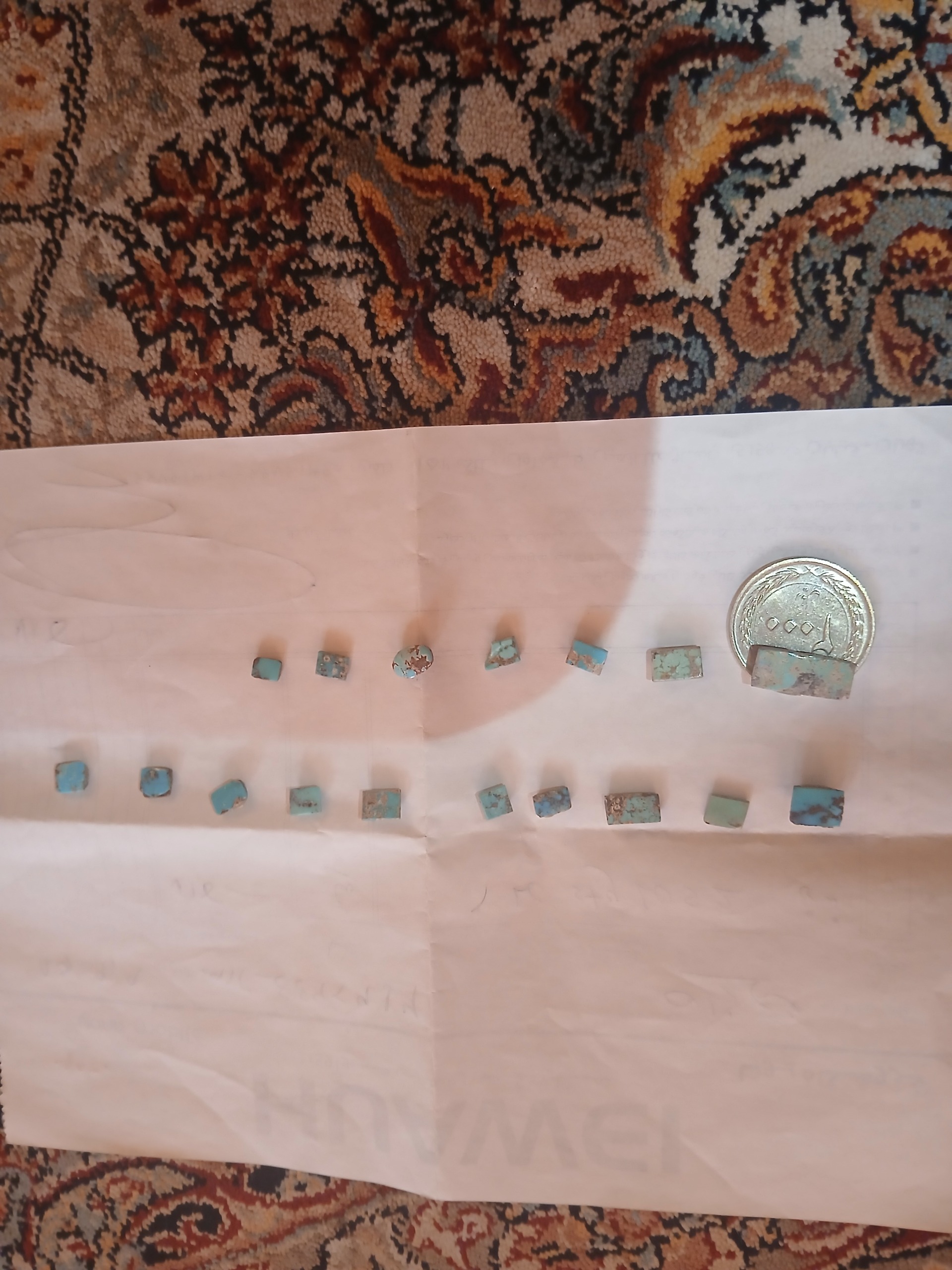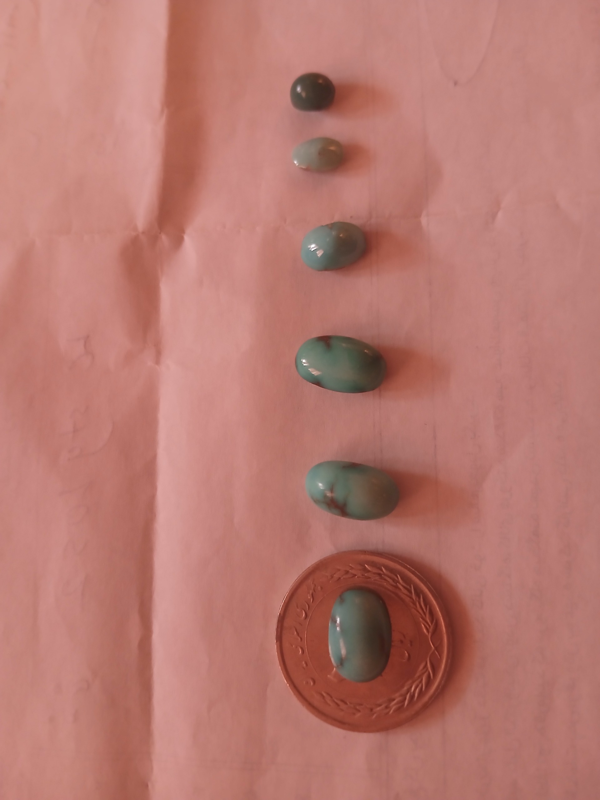 سلام نزدیک 20 سنگ فیروزه برای مخراج کاری و یا سنگ انگشتر متوسط استفاده میشه با مبلغ 1200 بفروش میرسه و سال 1386 خریدم