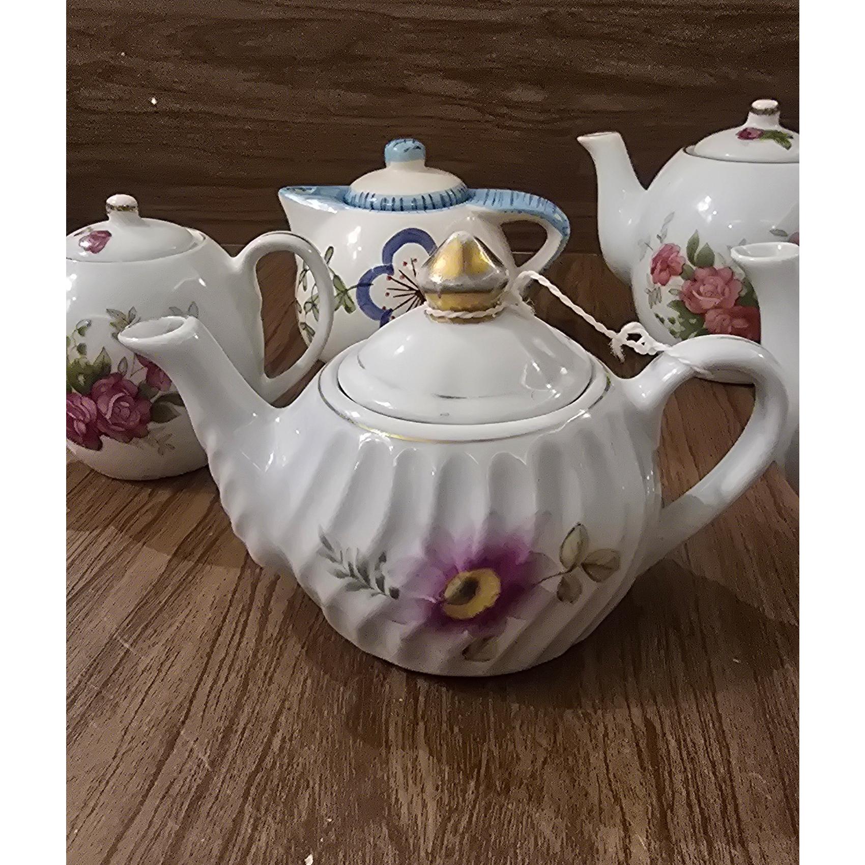 پنج عدد قوری کوچک یک الی دو نفره مناسب چای ، زعفرانی، دمنوش یا کلکسیون . همگی کاملا سالم و نو فقط طلایی های قوری پیچ کمرنگ شده است