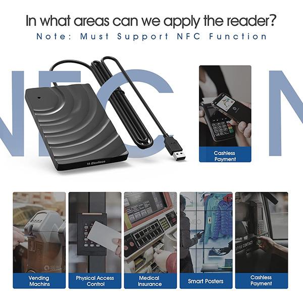 - Elexlinco NC004 یک کارتخوان هوشمند بدون تماس 13.56 مگاهرتز است که با استانداردهای رابط CCID مطابقت دارد.