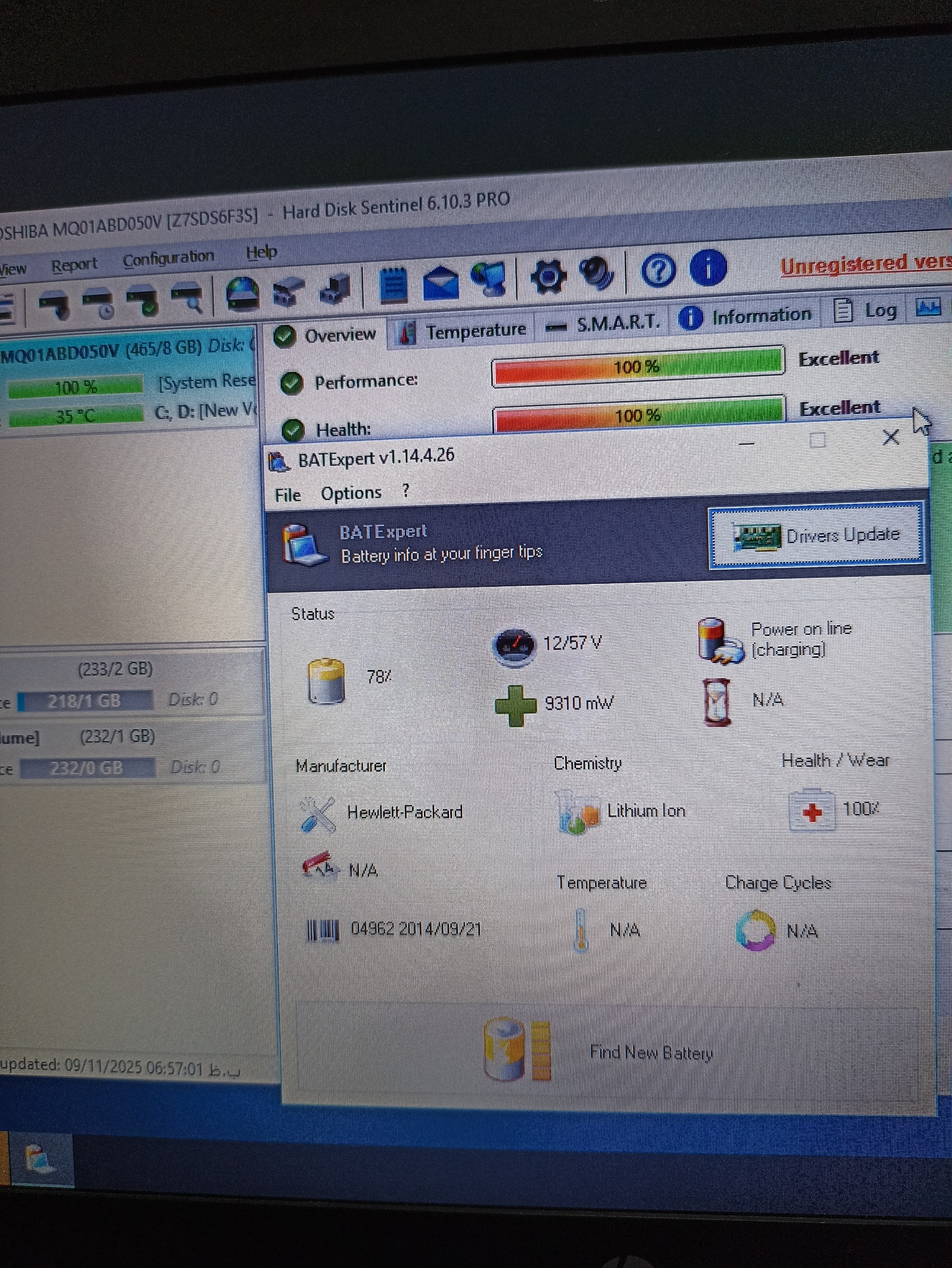 عکس سلامت هارد و سلامت باتری گذاشته شده .
