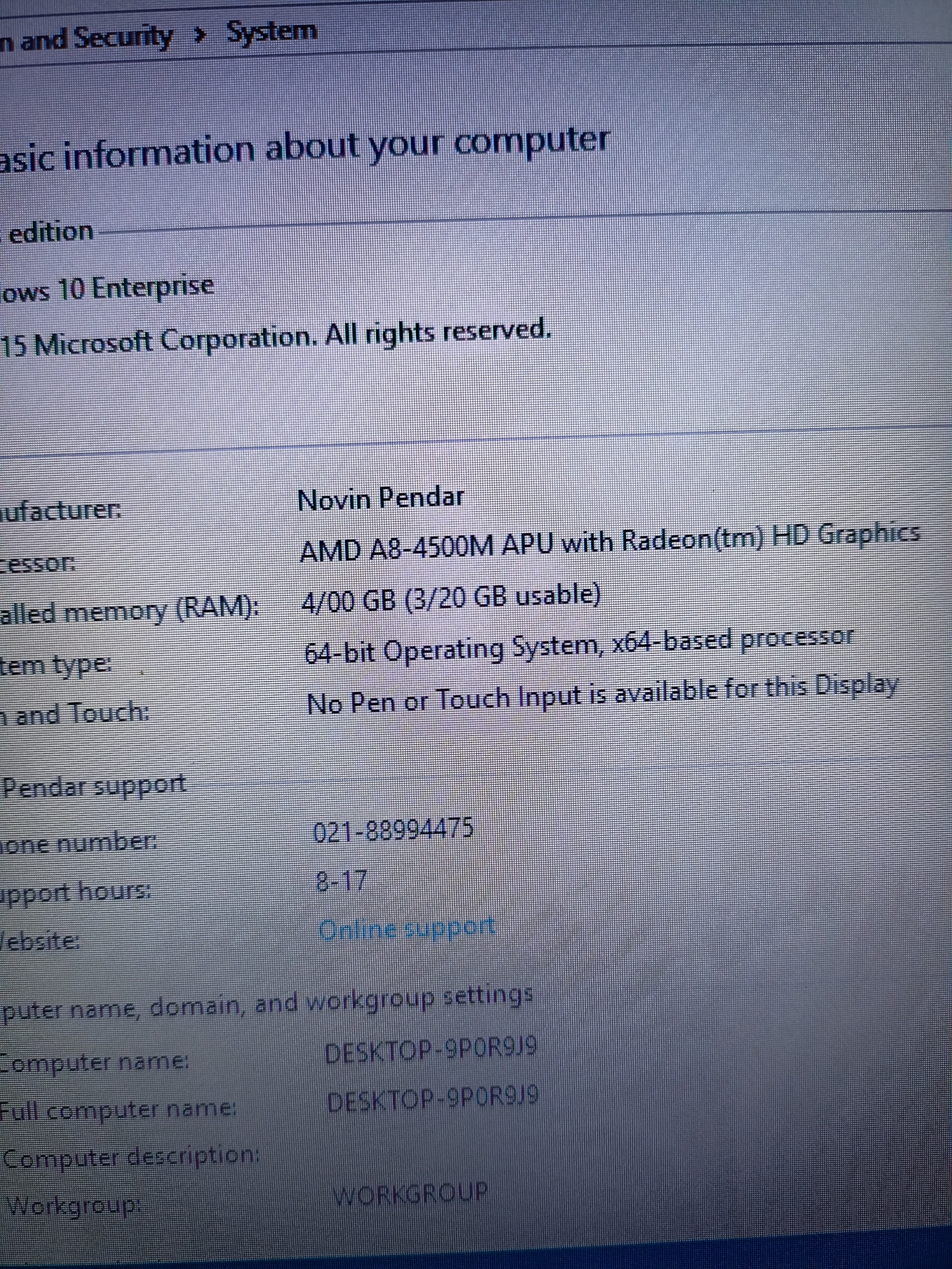 دستگاه از لحاظ سخت افزاری چک شدن از قبیل تاچ پد اسپیکر کیبورد ال سی دی هاله نداره وب کم سی دی رام سالمه.