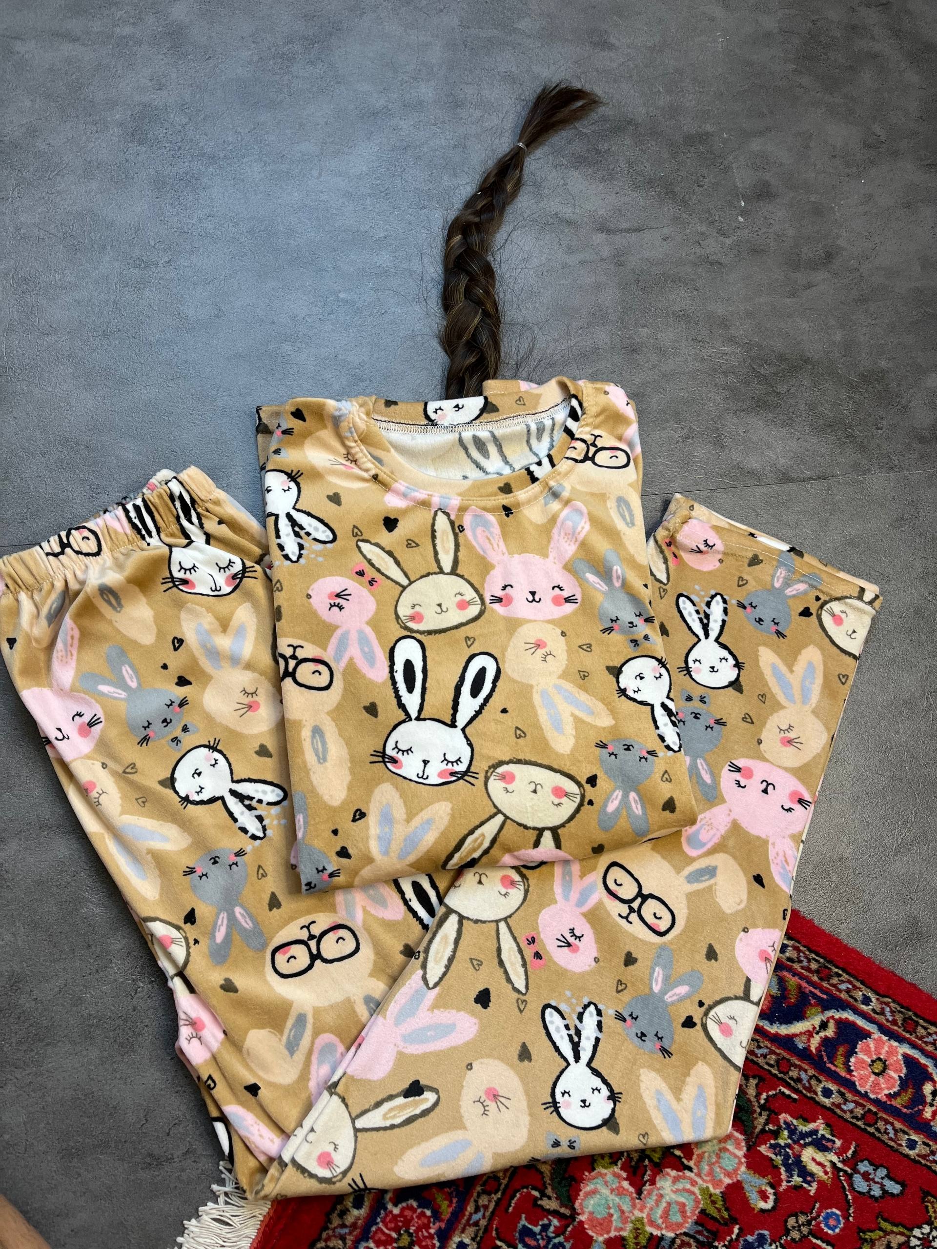 ست بلوز و شلوار مخمل دخترانه | طرح بندی کیوت