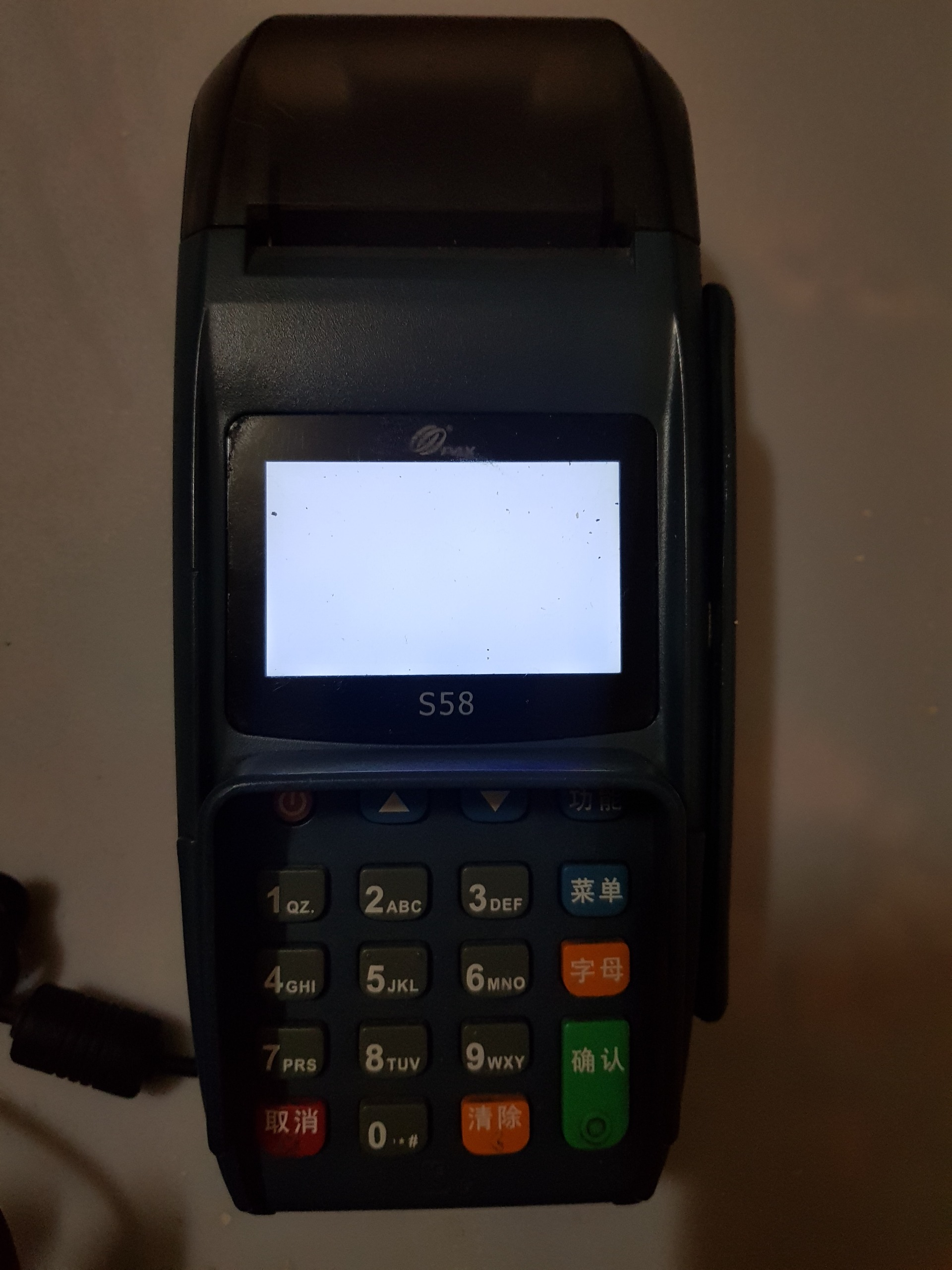 دستگاه کارتخوان بانکی سیار و ثابت s58 صفحه ان سفید شده و نیازمند برنامه و غیره می باشد مناسب تعمیرکاران و کسانی که در این زمینه تخصص دارند به همراه اداپتور که کابل برق ندارد