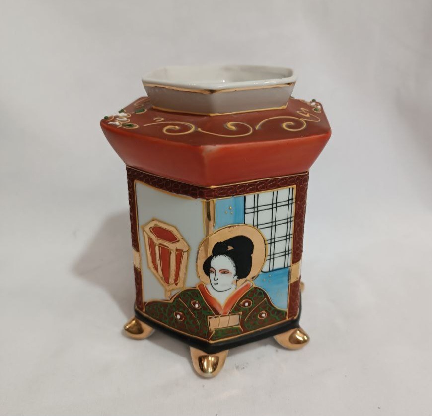 گلدان ژاپنی قدیمی نقاشی به اندلزه 14در11سانت