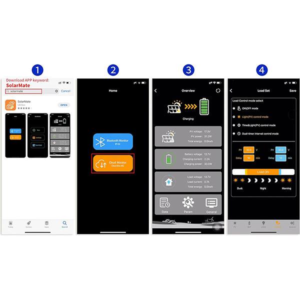 - این اپلیکیشن برای محیطهای دارای وایفای 2.4G که میتوانند به شبکه دسترسی داشته باشند، مناسب است. شما میتوانید از طریق اپلیکیشن گوشی خود از شهری دیگر، پارامترهای سیستم خورشیدی خود (پنل خورشیدی/باتری/بار) را مشاهده و تنظیم کنید.