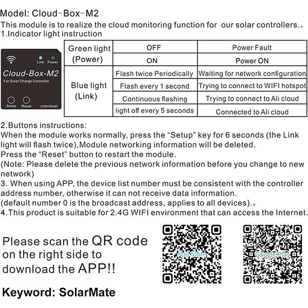 - آداپتور وایفای به فضای ابری GCSOAR برای کنترلکننده شارژ خورشیدی MPPT از طریق اپلیکیشن، پارامترهای مانیتورینگ و تنظیم (وایفای (Cloud-Box-M2))
