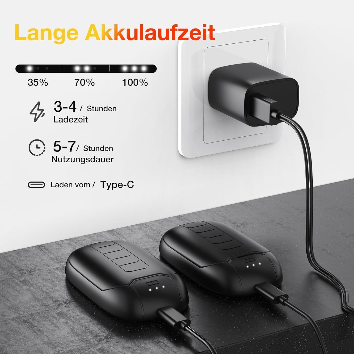 (شارژ سریع با ظرفیت بالا): گرمکن دست USB قابل استفاده مجدد با ظرفیت باتری بالا - باتری لیتیومی قابل شارژ 3000 میلیآمپر ساعت*2 با پورت شارژ USB-C برای استفاده طولانی مدت. عمر باتری 5 تا 7 ساعت است. با آداپتور 5 ولت/2 آمپر و کابل شارژ دوگانه ما قابل استفاده است. دو گرمکن دستی میتوانند همزمان در عرض 3 تا 4 ساعت به طور کامل شارژ شوند.