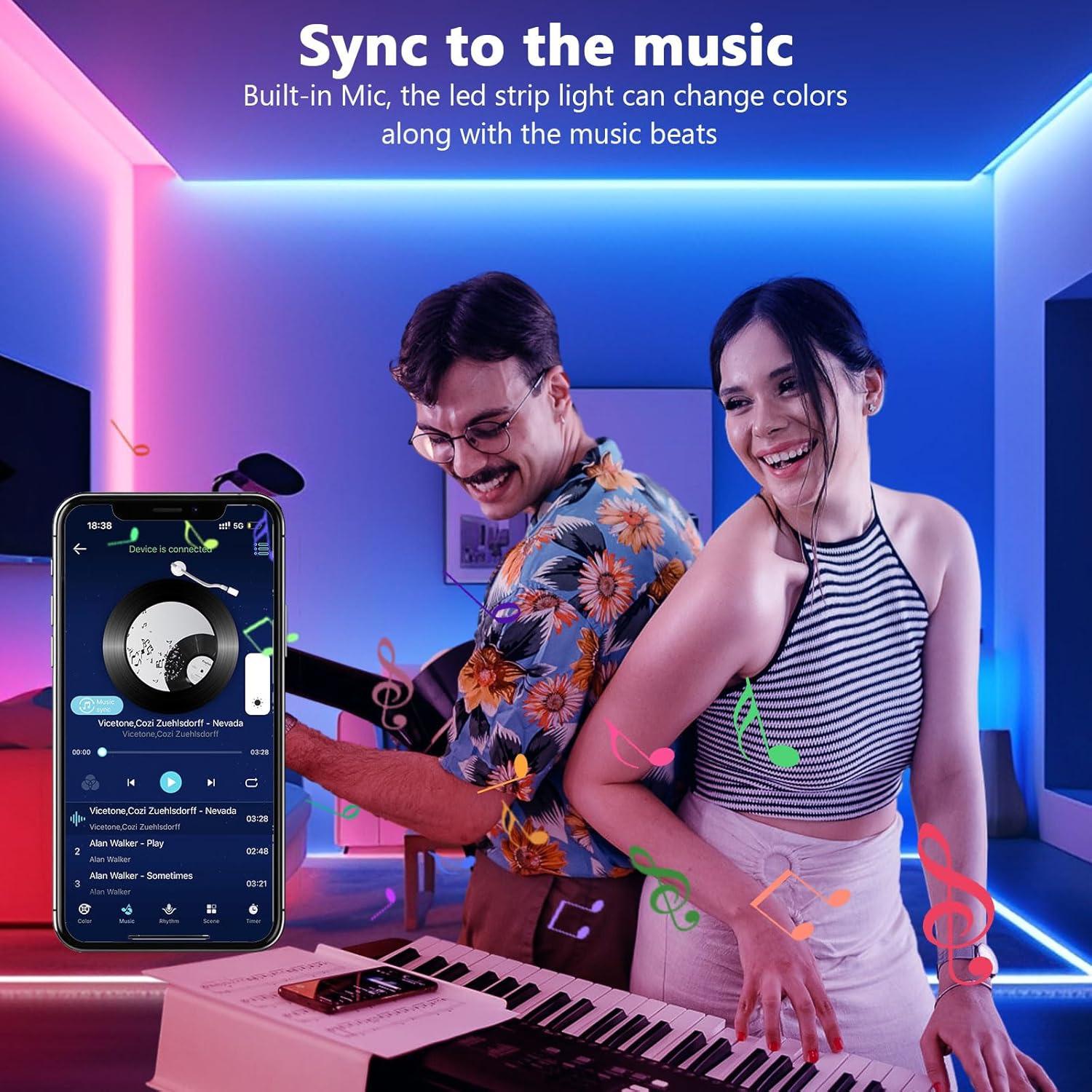 - چراغ نواری LED، چراغهای LED 10 متری، چراغهای LED قابل برش با ریموت کنترل هوشمند، چراغهای نواری LED RGB با قابلیت تغییر رنگ و همگامسازی موسیقی برای اتاق خواب، دکوراسیون اتاق [کلاس انرژی A]