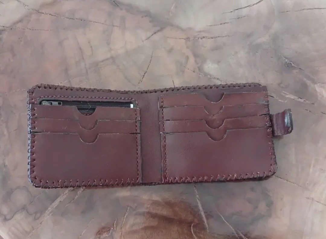 کیف جیبی چرمی، ساخته شده از چرم طبیعی و باکیفیت و کاملا دست دوز، دارای هفت جیب جای کارت ویک جیب زیپ دار و یک جیب جای اسکناس، یک صنایع دستی ماندگار و متفاوت، در ساخت این کیف از نخ ضخیم موم زده مخصوص دوخت استفاده شده است.