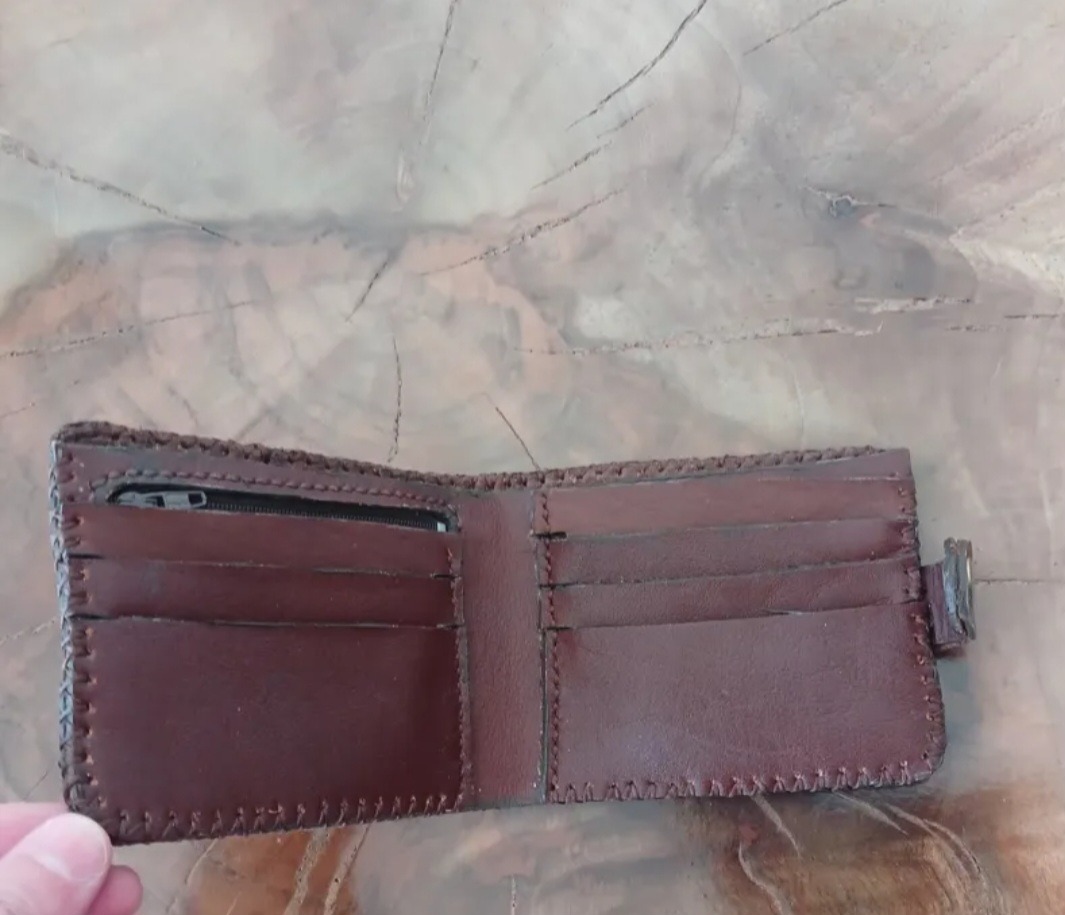 کیف جیبی چرمی، ساخته شده از چرم طبیعی و باکیفیت و کاملا دست دوز، دارای هفت جیب جای کارت ویک جیب زیپ دار و یک جیب جای اسکناس، یک صنایع دستی ماندگار و متفاوت