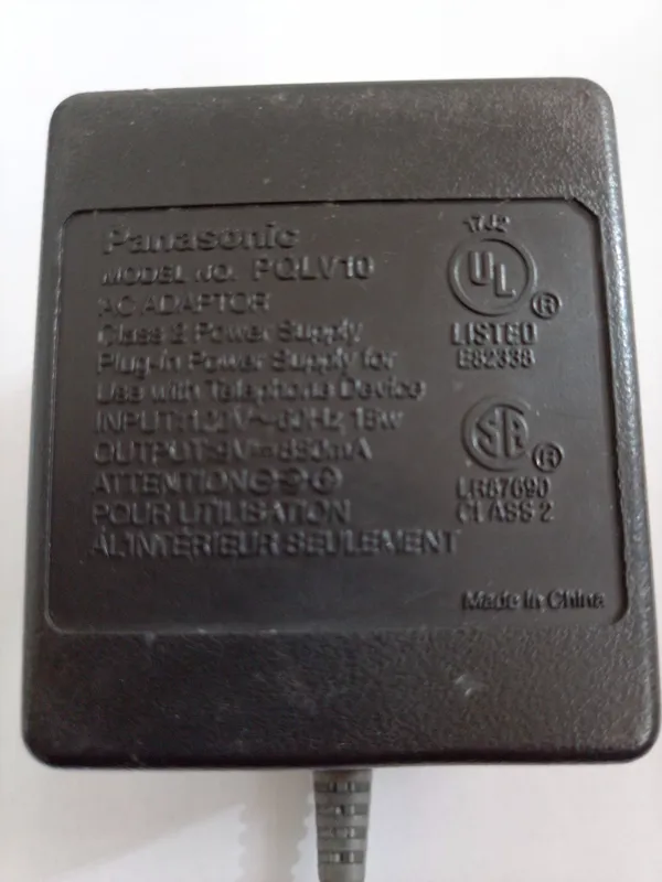 آداپتور اورجینال تلفنهای پاناسونیک.ساخت چین.قاب آداپتور یکبار باز شده. ولتاژ 9 ولت.جریان 800 میلی آمپر.سیم و فیش چپقی مخصوص پاناسونیک.دقت کنید که قطبهای تلفن های پاناسونیک جابجا هستند و وسط فیش قطب منفی است.