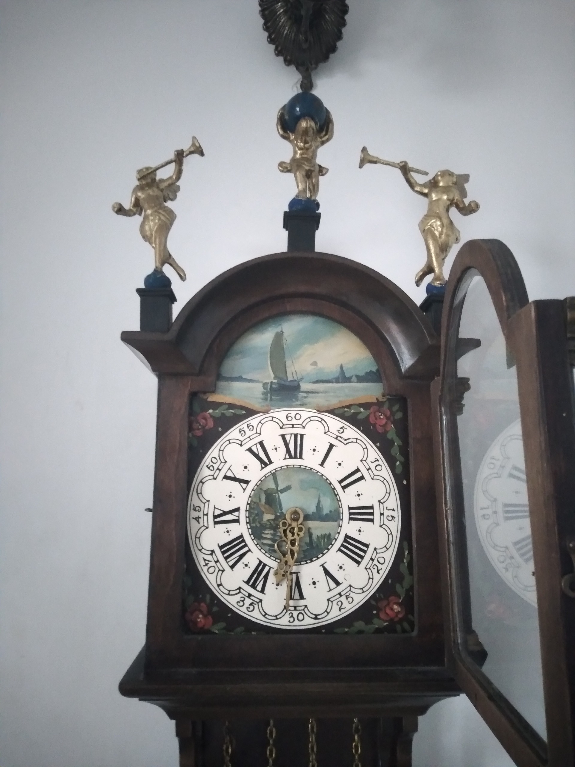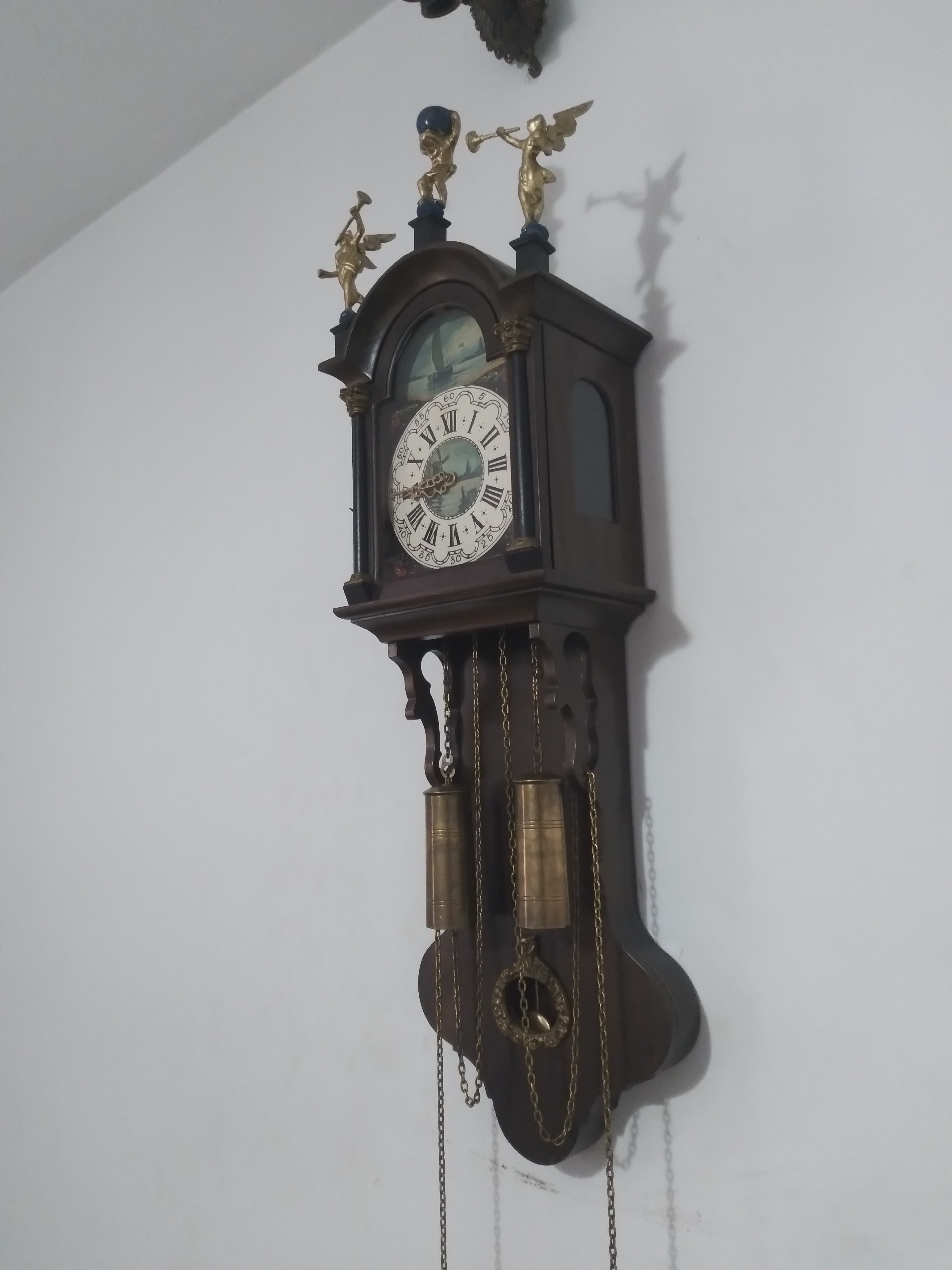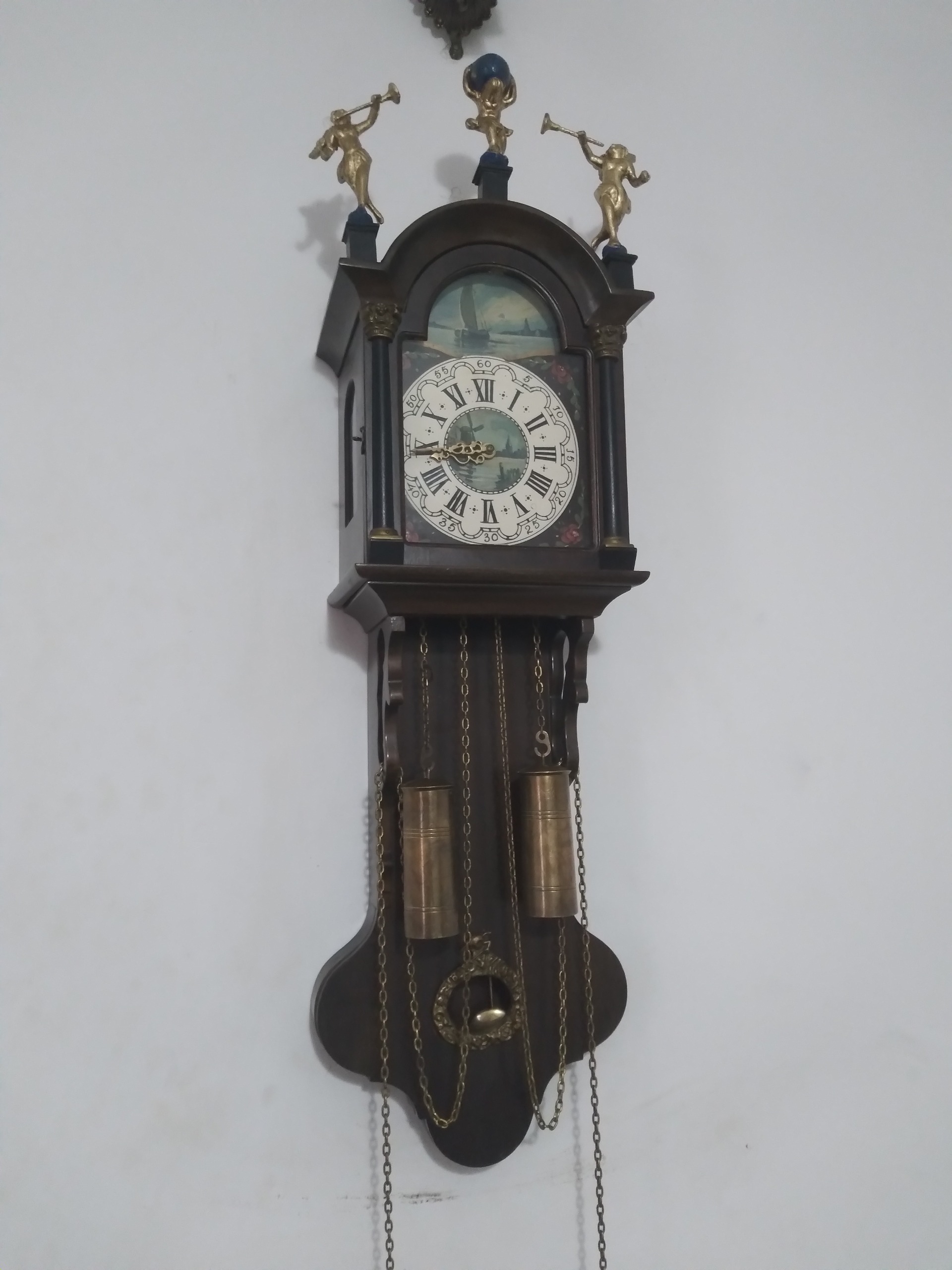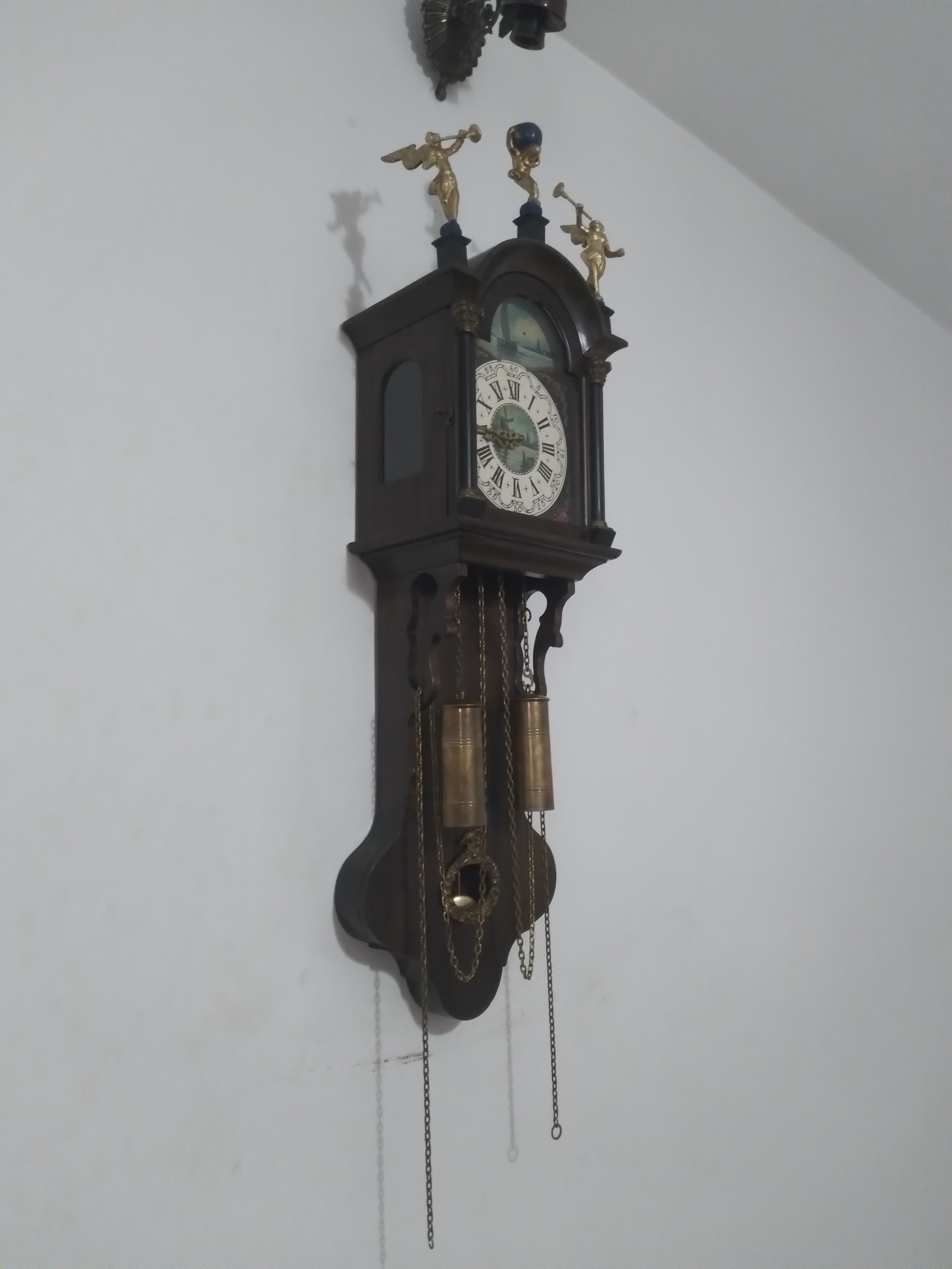 ساعت دو وزنه آلمانی قدیمی هفته کوک،صفحه تمام نقاشی کار دست،با مجسمه فرشته زیباوزنه های برنجی و سنگین بسیار زیبا و خاص ارتفاع بدون مجسمه 76 سانت بدون احتساب مجسمه،بامجسمه 86 سانت به علت حساس و ظریف بودن کالا مرجوعی نداریم در خرید خود دقت فرمایید