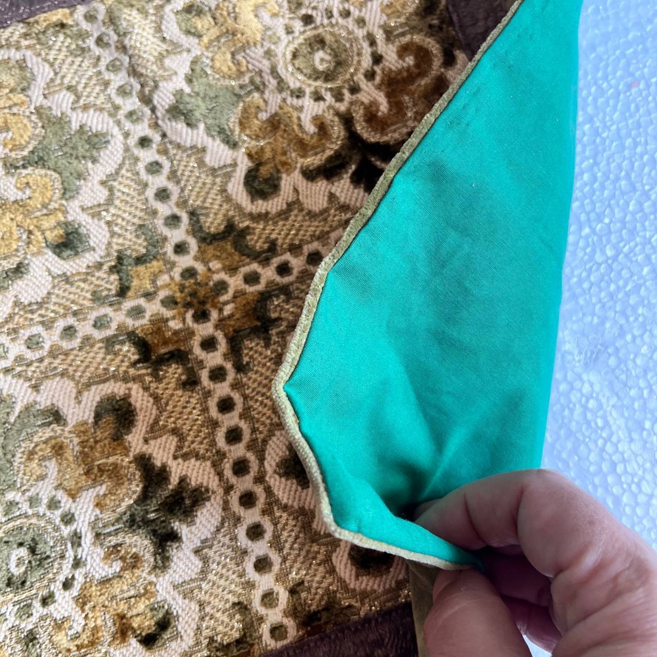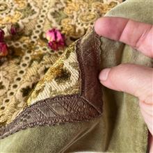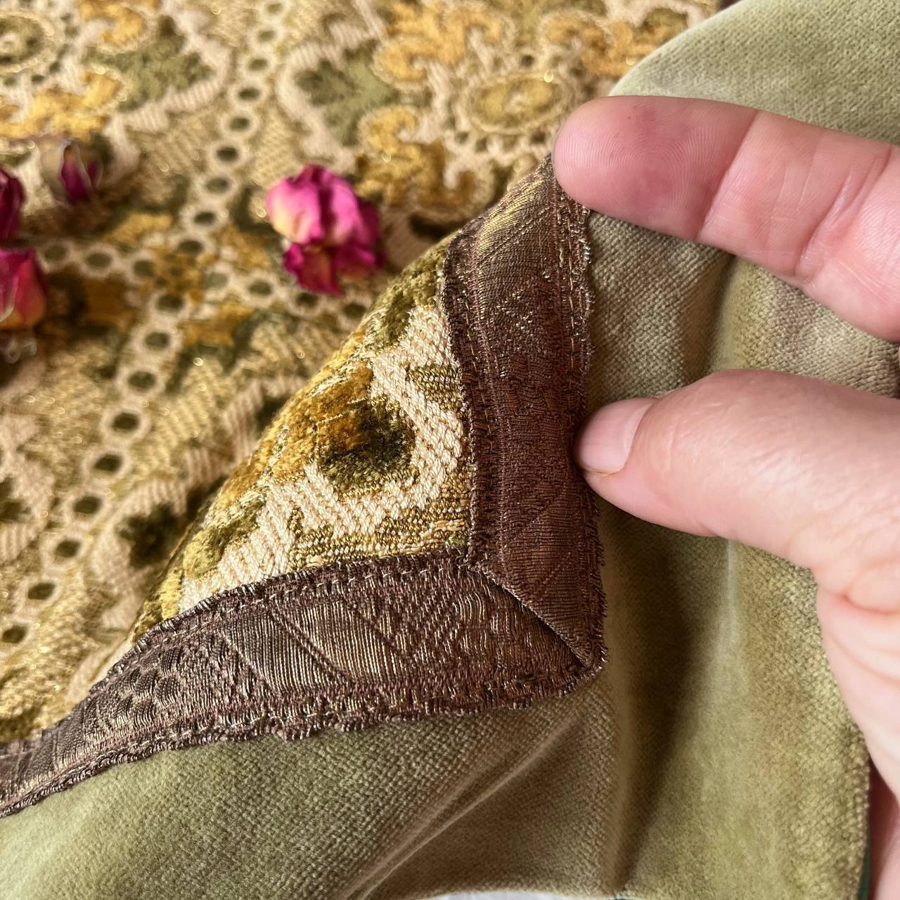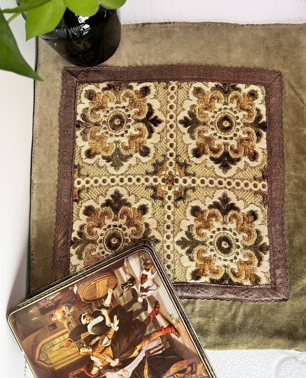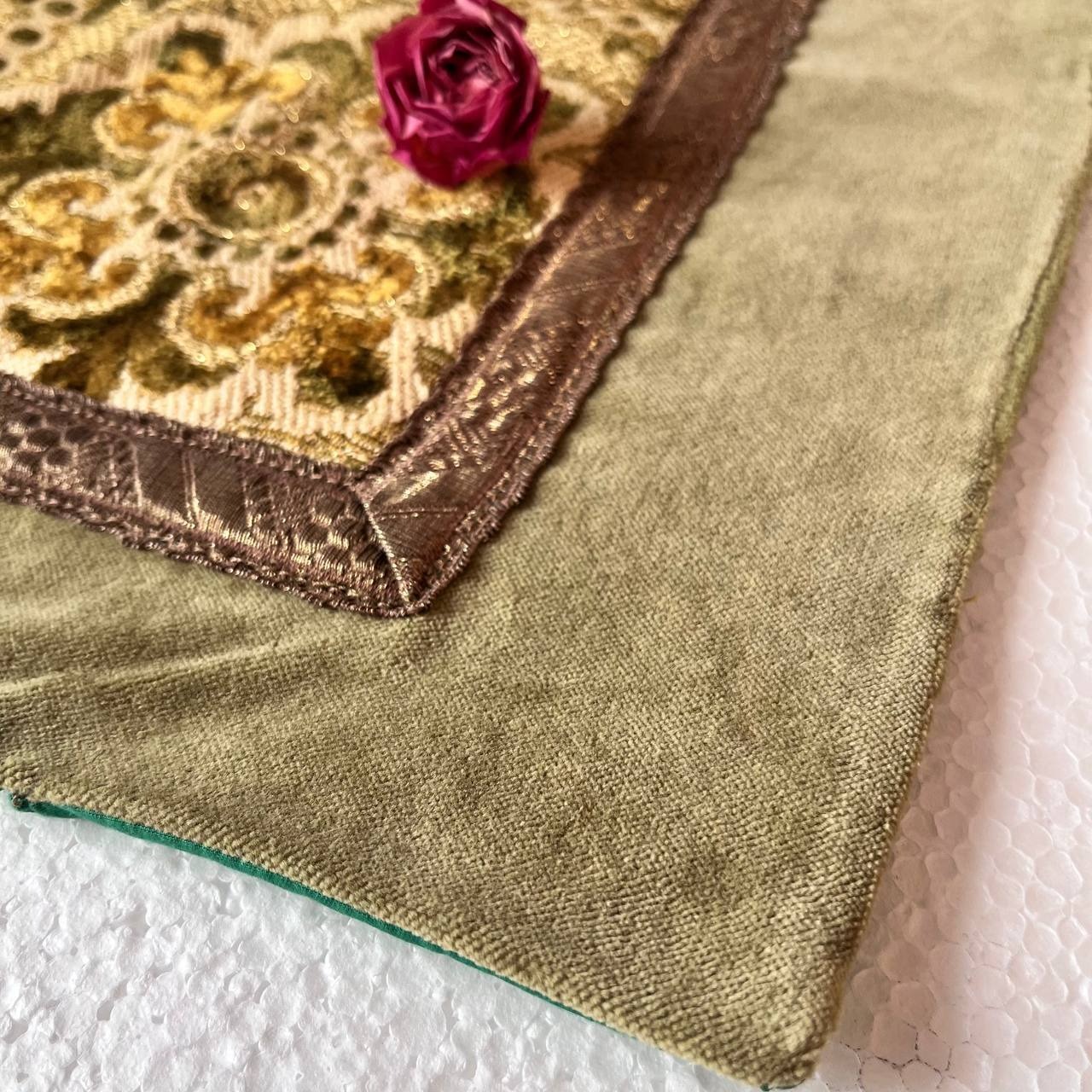 رومیزی سبز قدیمی خارجی ترکیب مخمل برجسته بلژیکی و مخمل ساده