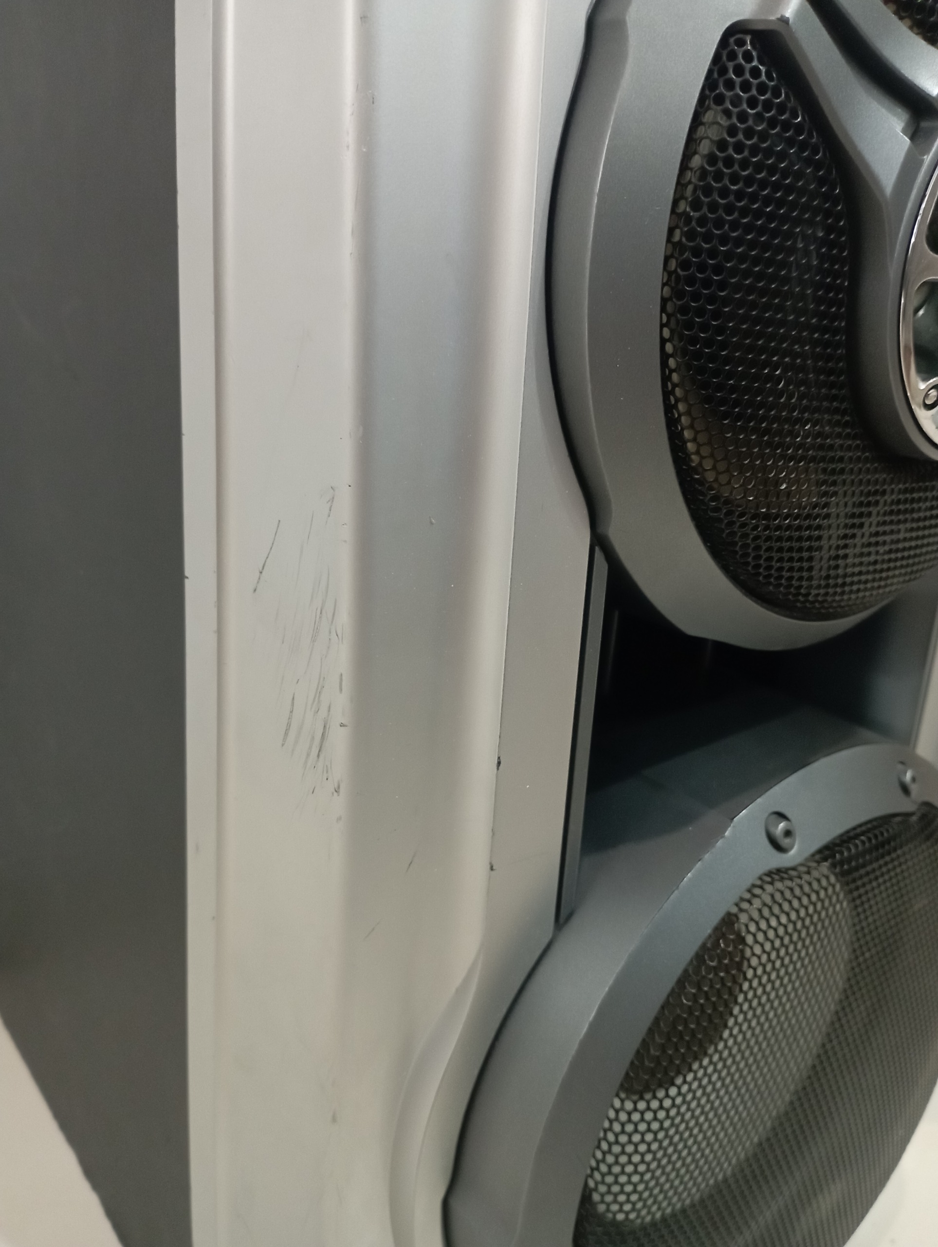 پشت باکس مقداری شکستگی داشته که ترمیم شده ، در صدا و کارکرد هیچ مشکلی ندارد
