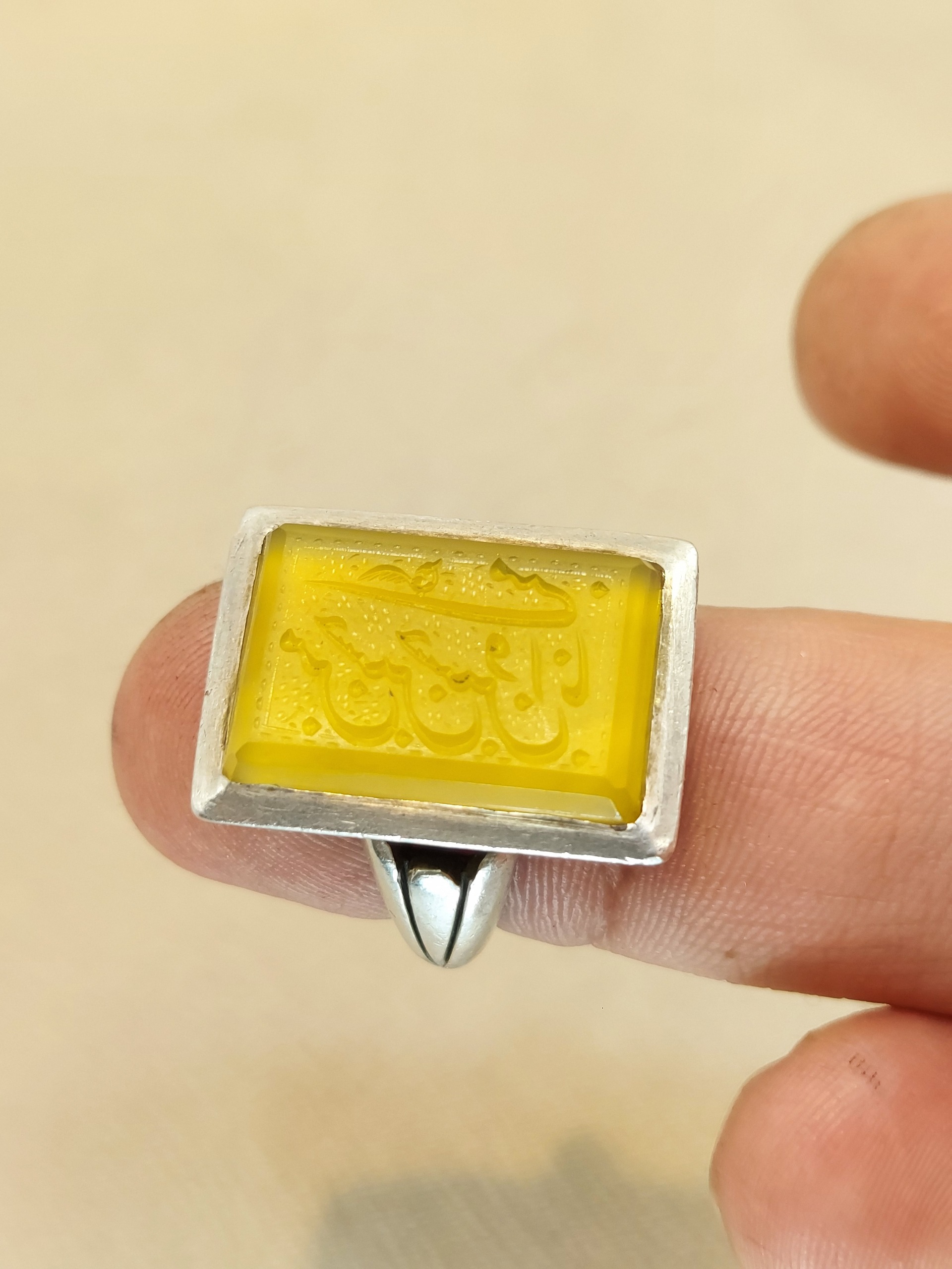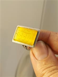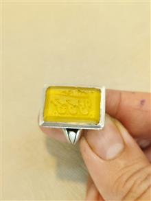 انگشتر عقیق زرد خط چپ با رکاب دستساز