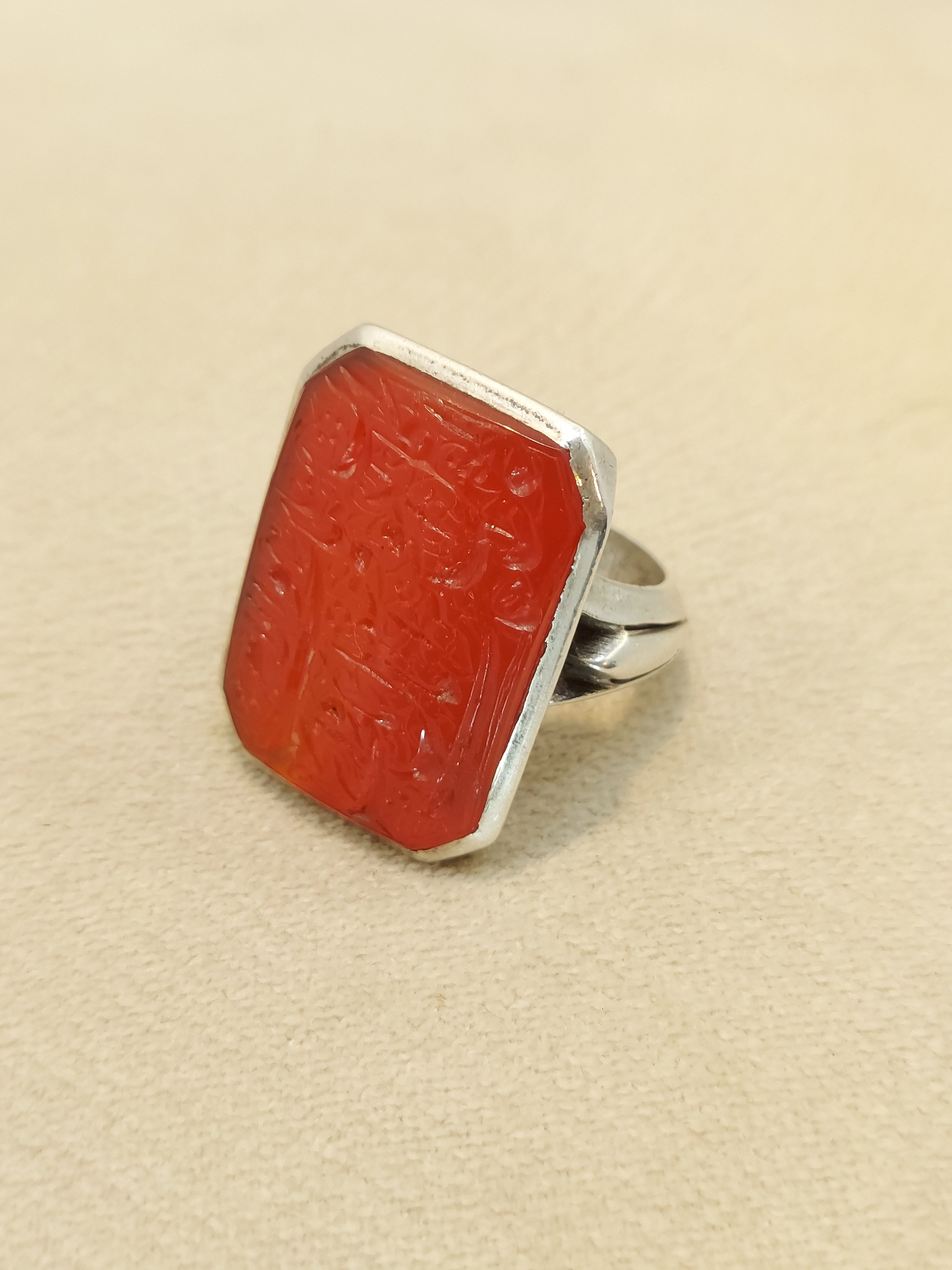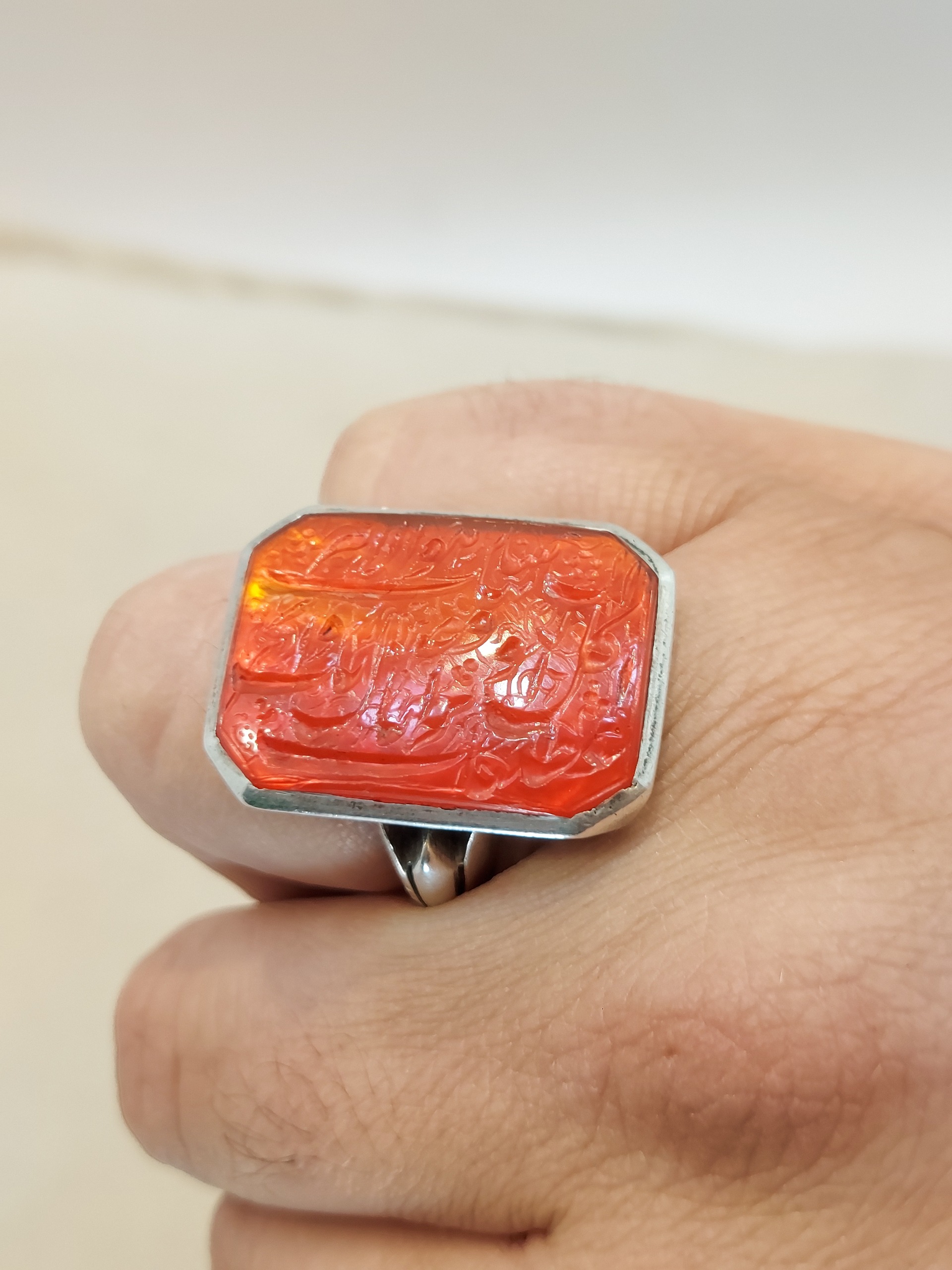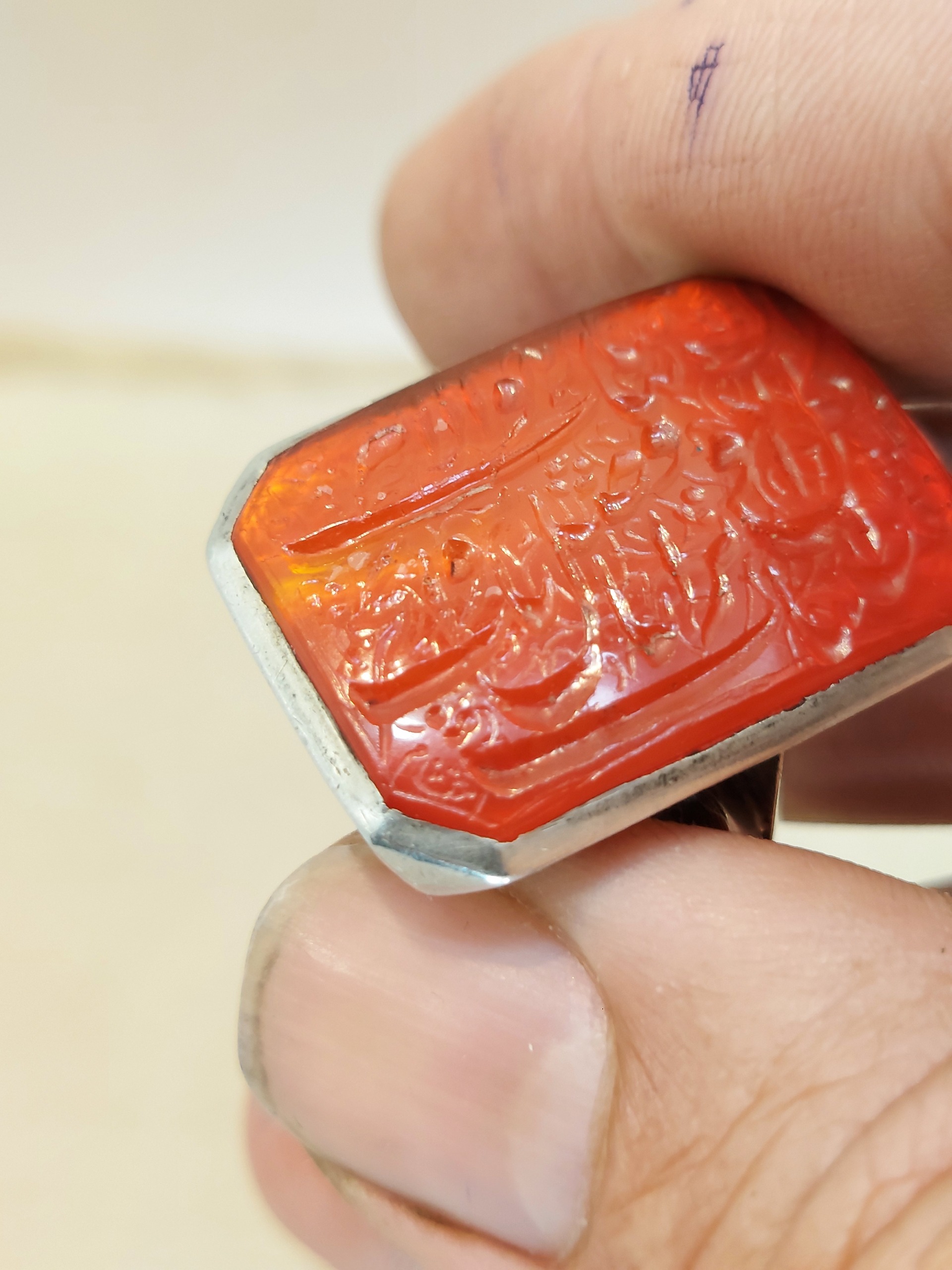 انگشتر عقیق یمنی پرتقالی خط استاد احتشام