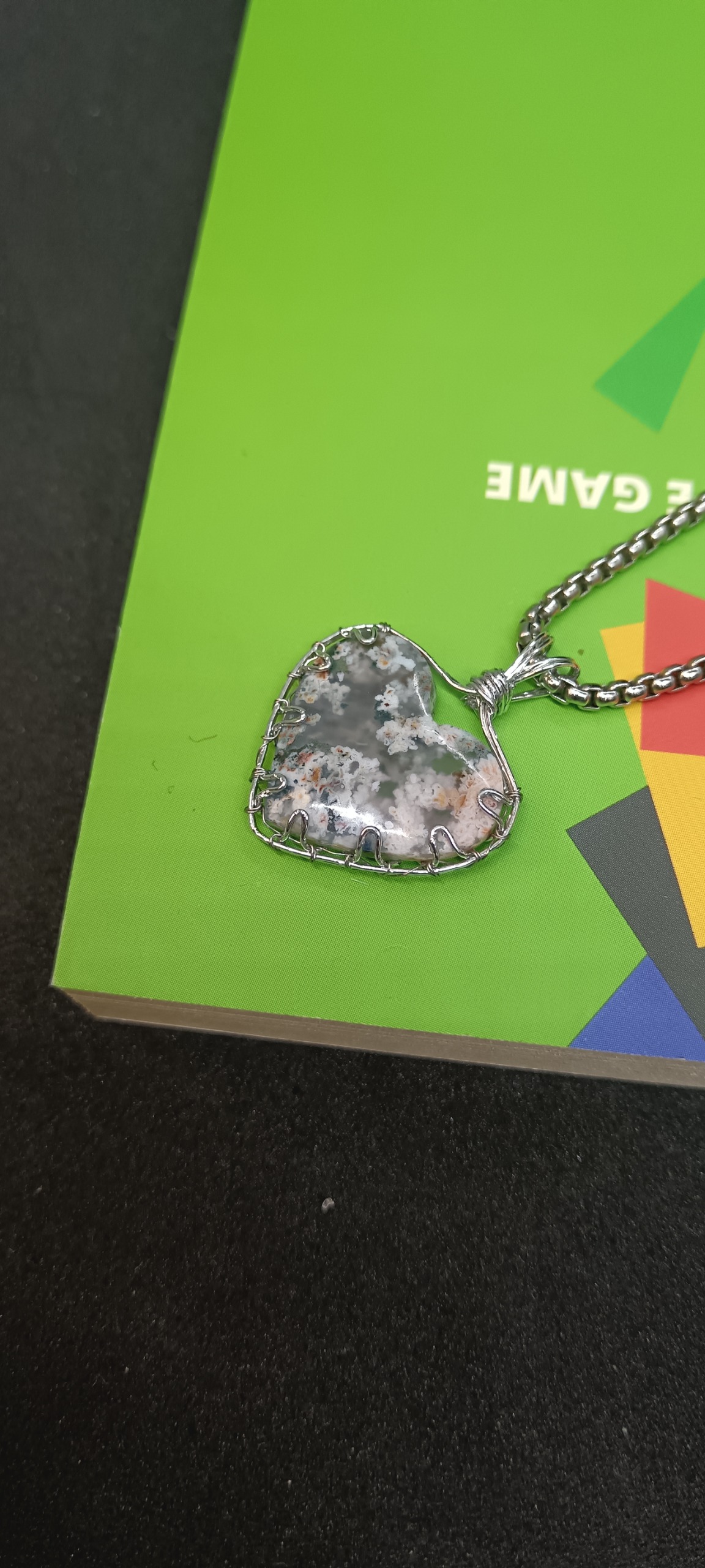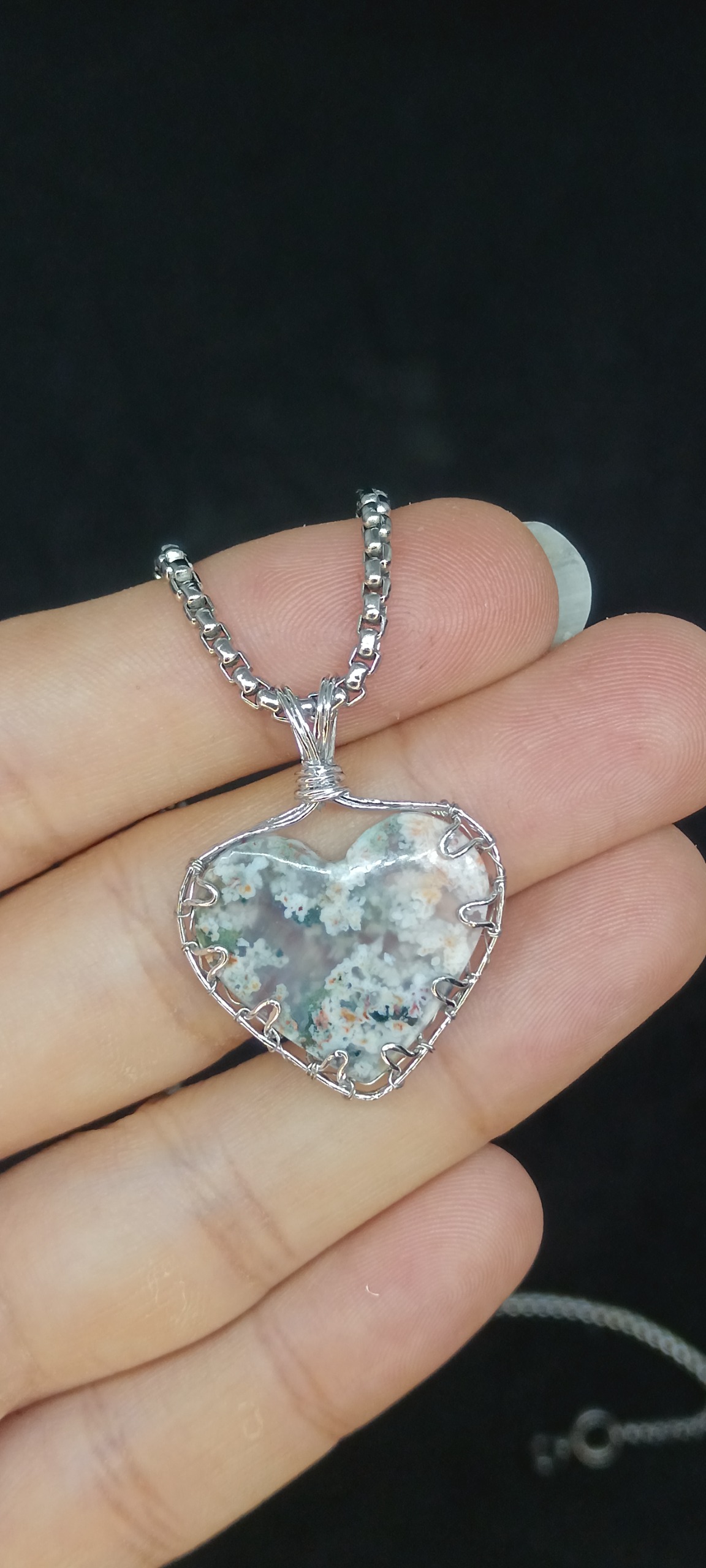 گردن آویز سنگ عقیق شجر بهاری طبیعی و معدنی سیمبافت از جنس نخ سیم رنگ ثابت ضد حساسیت