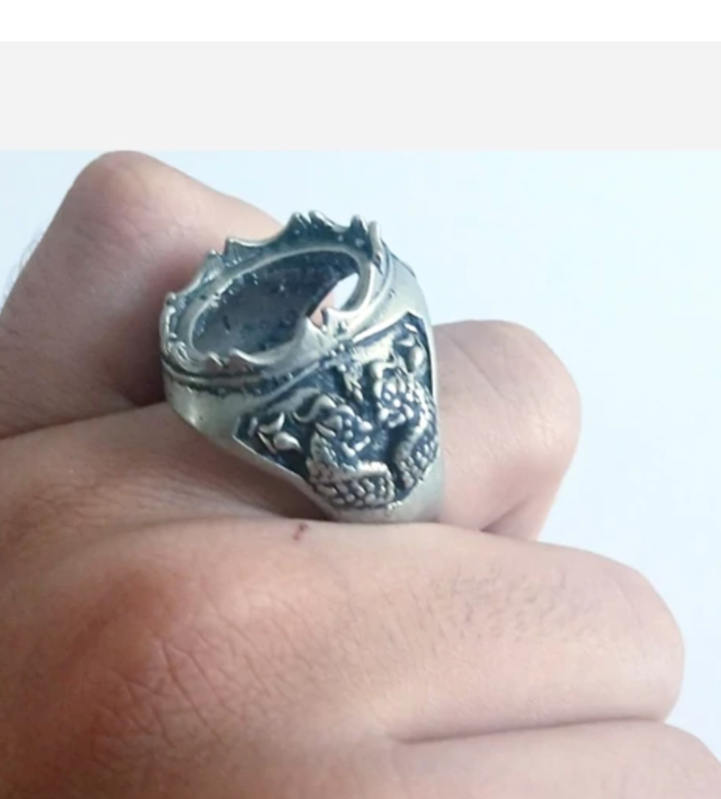 رکاب انگشتر نقره عیار پایین طرح اژدها