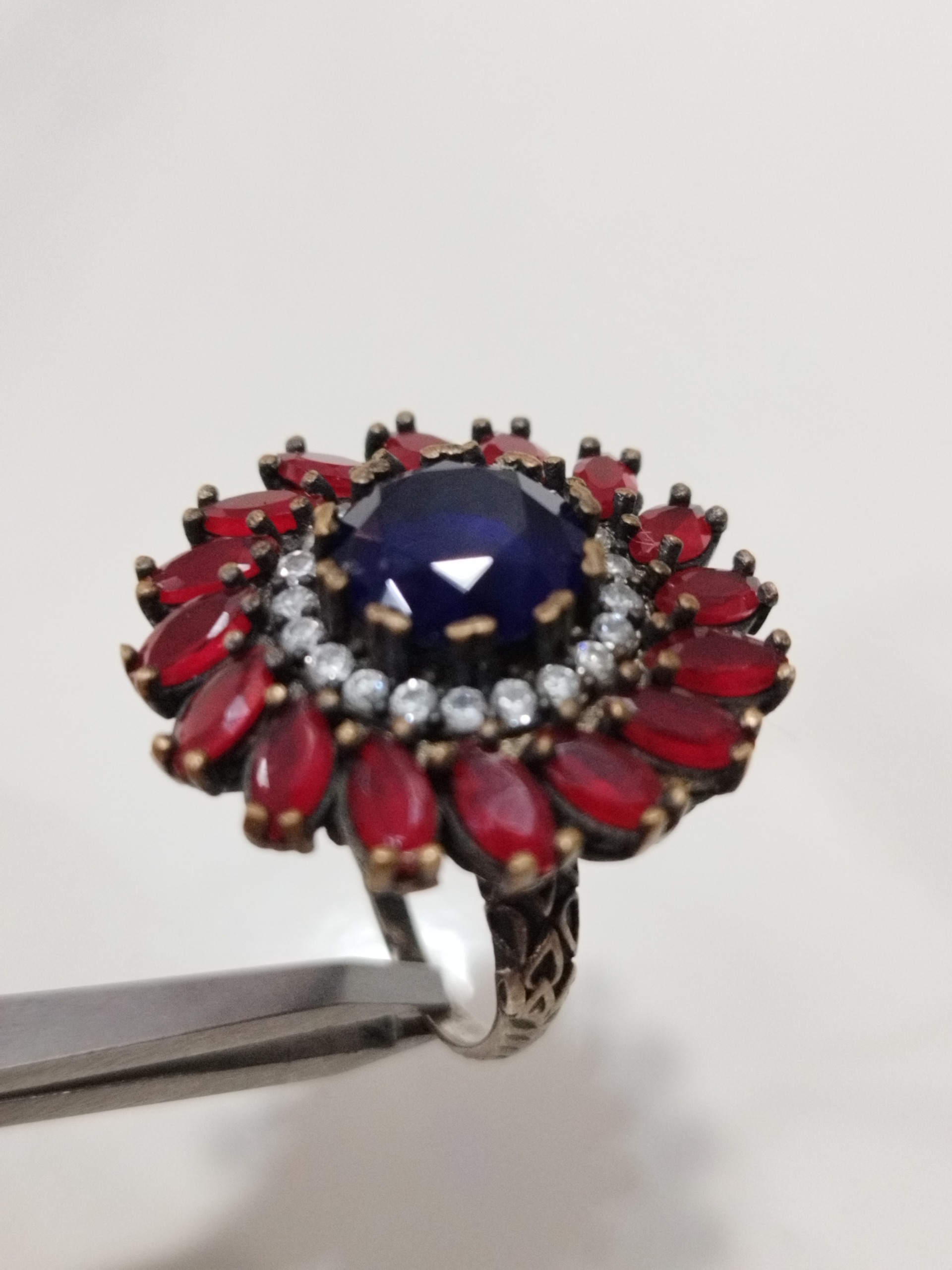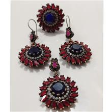 نیم ست نقره ،یاقوت سرخ و کبود قدیمی عثمانی بینظیر