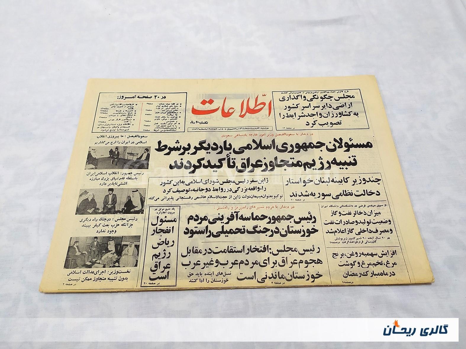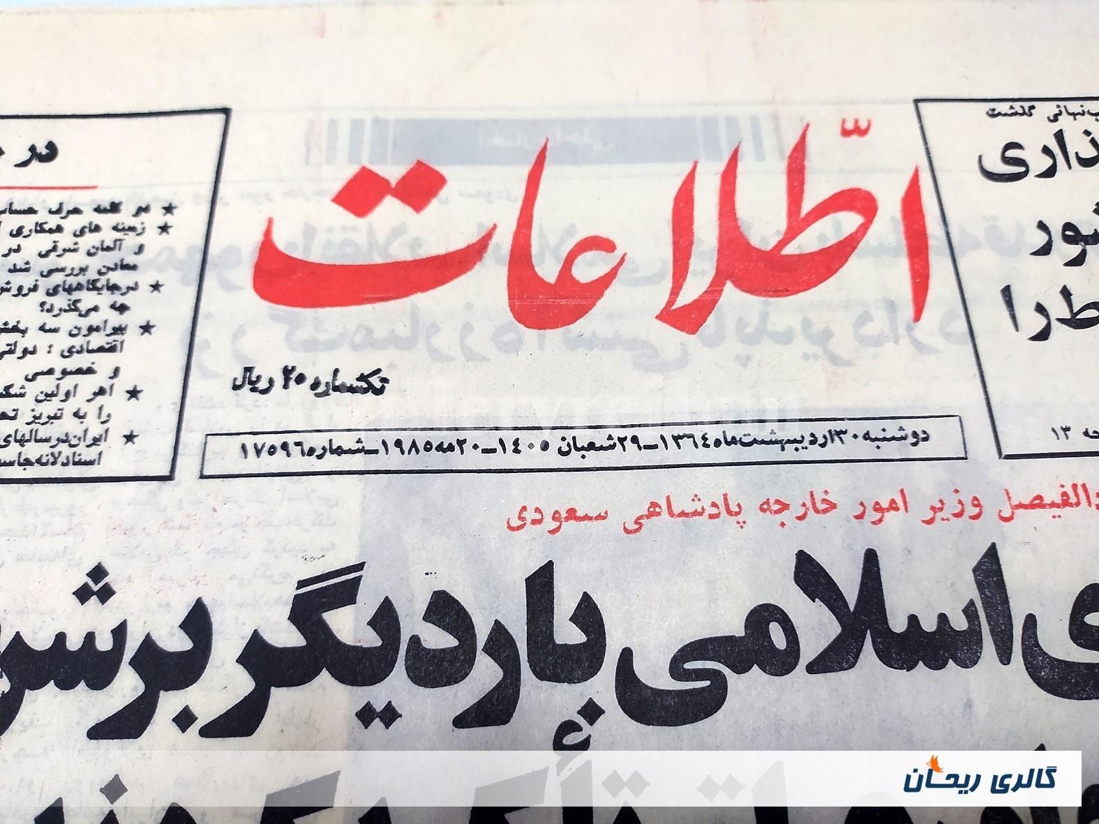 روزنامه کلکسیونی اطلاعات چاپ 30اردیبهشت1364 (1585)