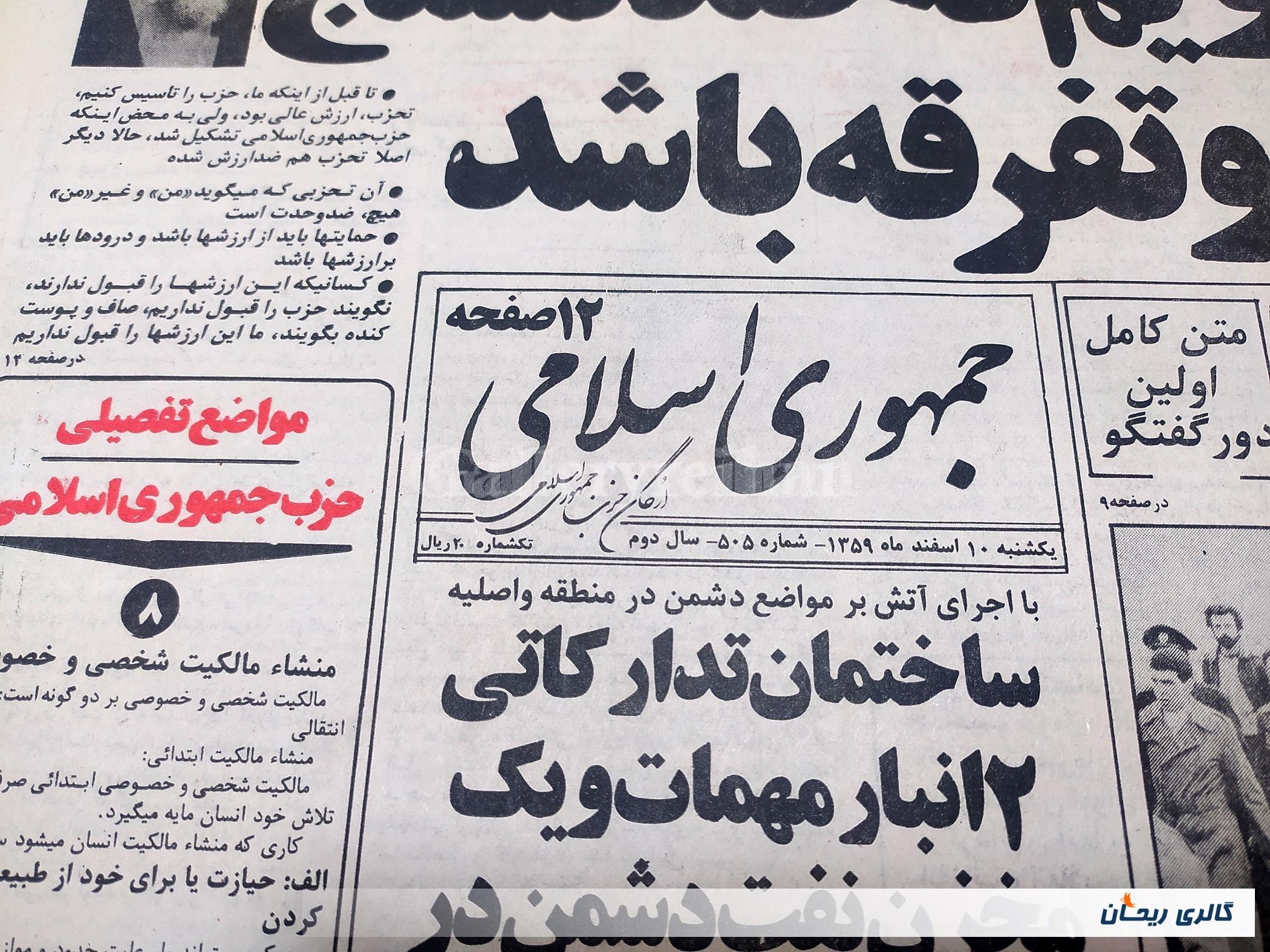 روزنامه کلکسیونی جمهوری 10 اسفند 1359 (کد1561)