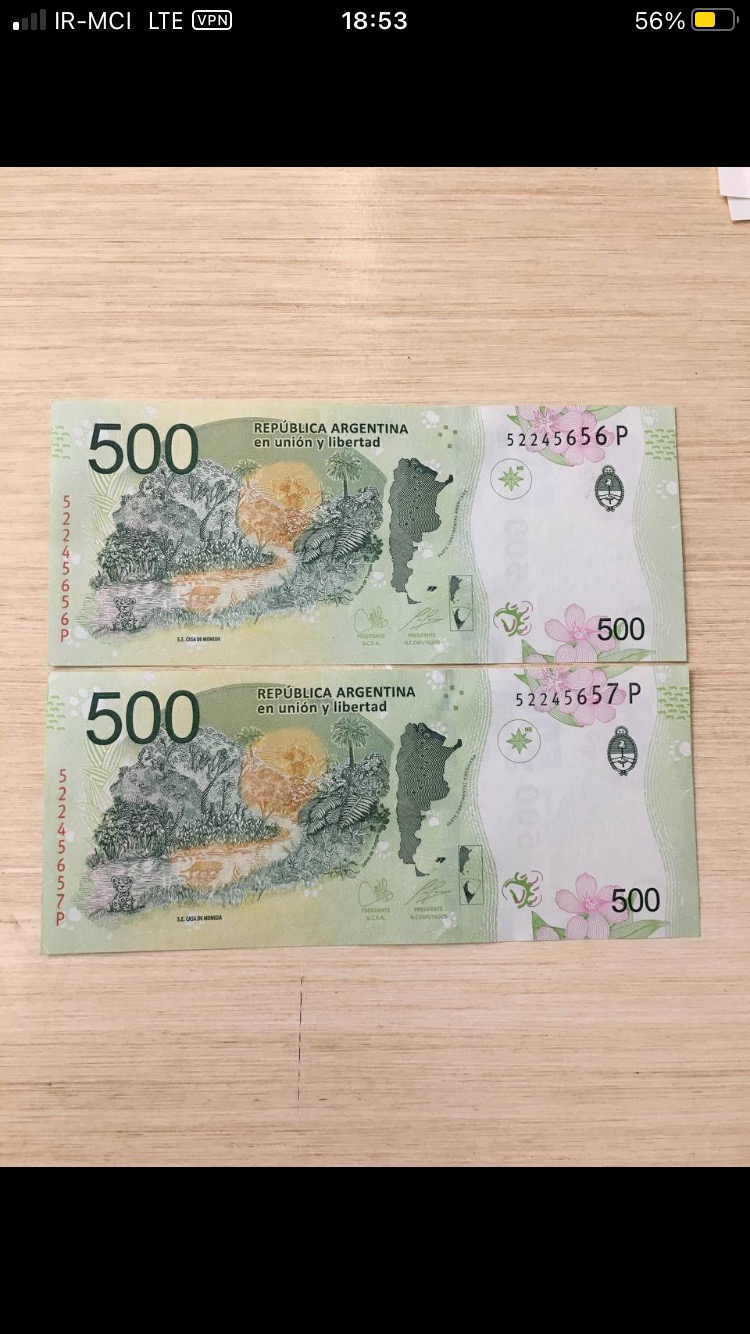جفت اسکناس 500 پزو آرژانتین کیفیت بانکی