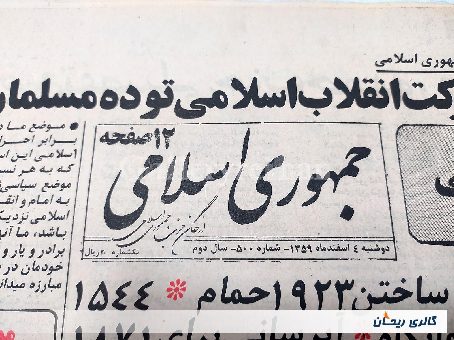 روزنامه کلکسیونی جمهوری 4 اسفند 1359 (کد1591)