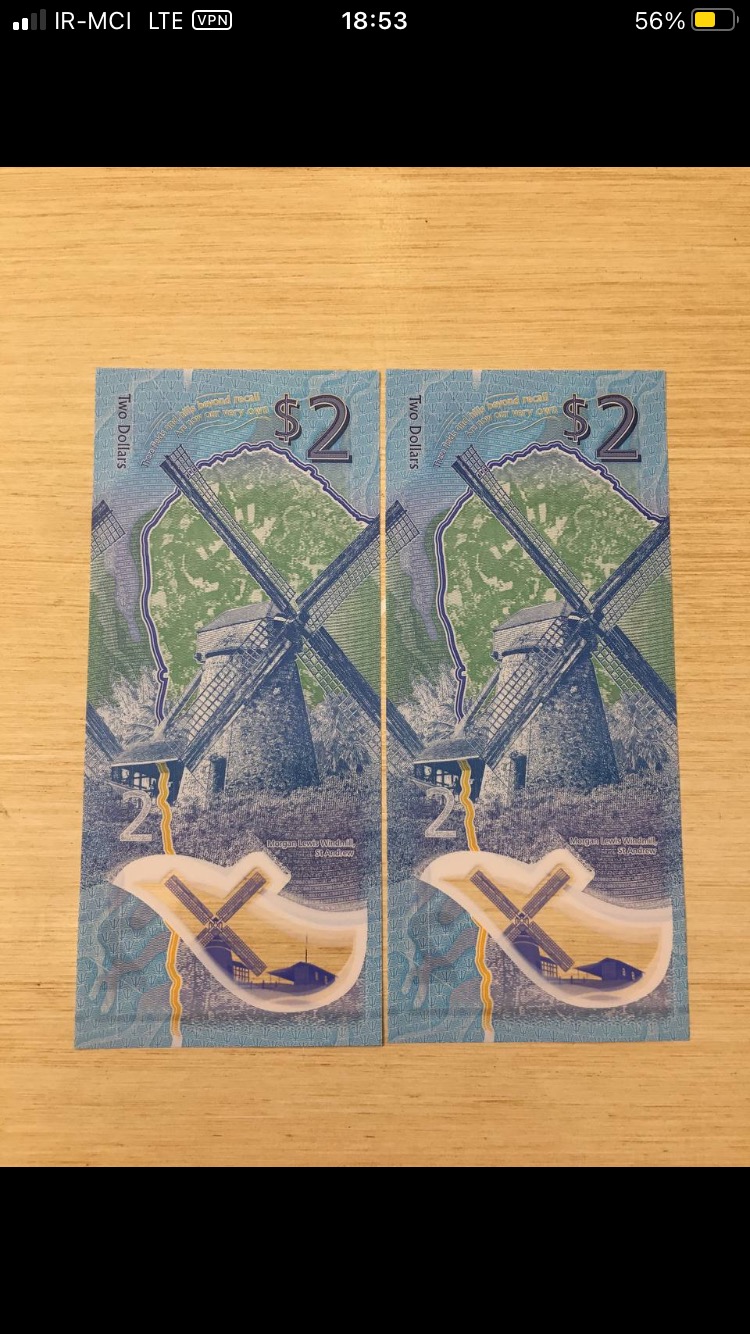 جفت اسکناس 2 دلار باربادوس کیفیت بانکی