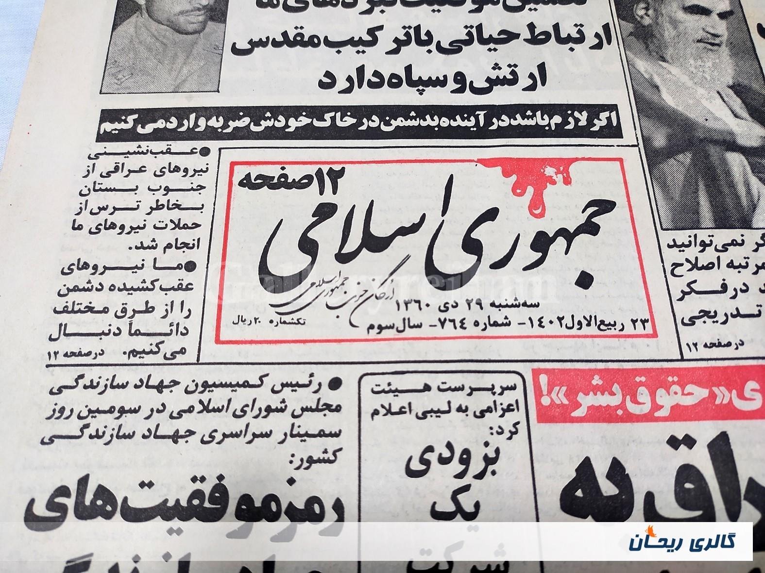 روزنامه کلکسیونی جمهوری چاپ 29 دی 1360 (کد1576)