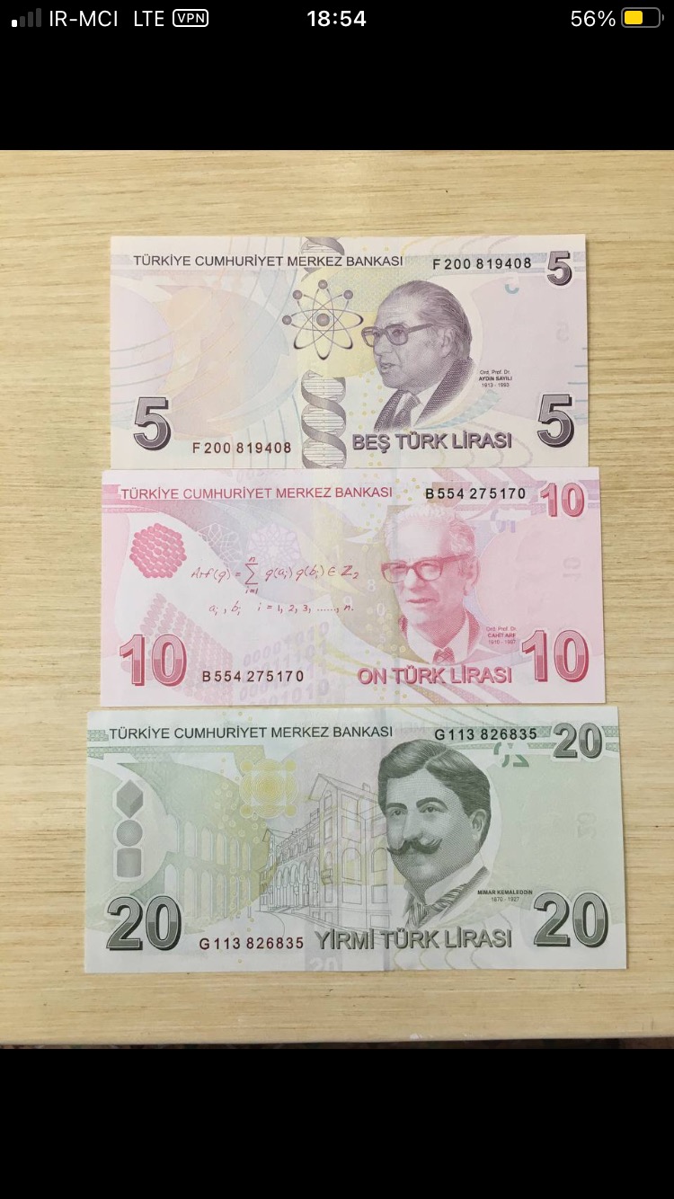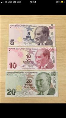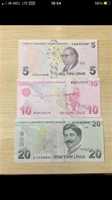 ست 3 عددی اسکناس کشور ترکیه کیفیت بانکی و رایج