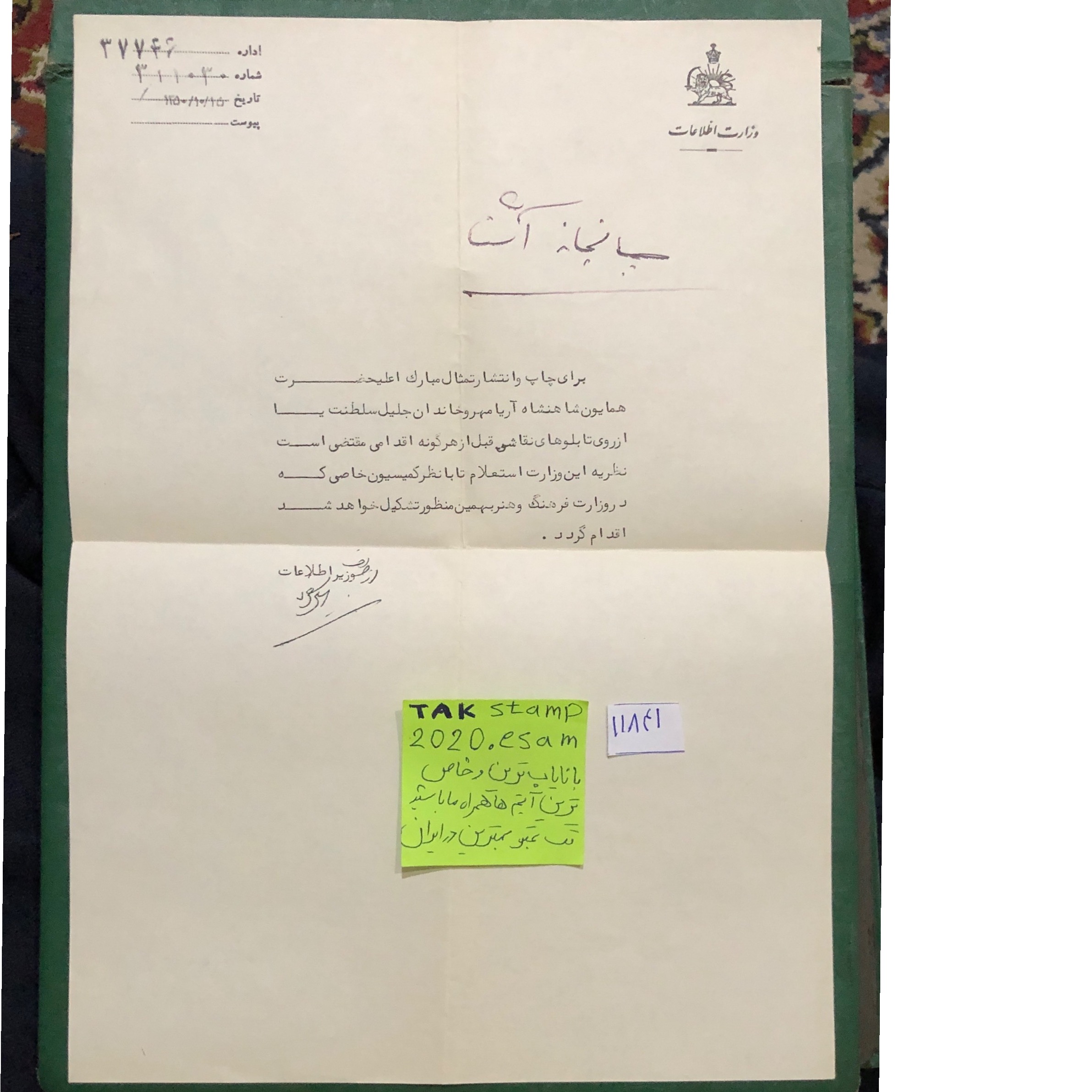 سندوزارت اطلاعات اجازه دستورچاپ عکس شاه