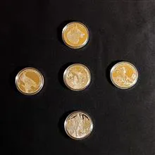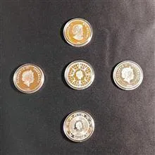 پنج عدد سکه یادبود ملکه الیزابت داخل کپسول اورجینال خارجی . ضرب کاندا . سکه های طلا دارای روکش 7 لایه طلای 24 عیار میباشند و سکه های نقره . دارای 7 لایه سیلور ناب و اصیل با آبکاری کامل از بهترین نقره استرلینگ انگلستان ساخته شده اند . مجموعه ای بسیار جذاب و با ارزش . به هیچ عنوان با مسکوکات به ظاهر مشابه اما تولید داخل و یا چین مقایسه نکنید عزیزان . قیمت مربوط به پنج عدد سکه مطابق با تصویر میباشد .
