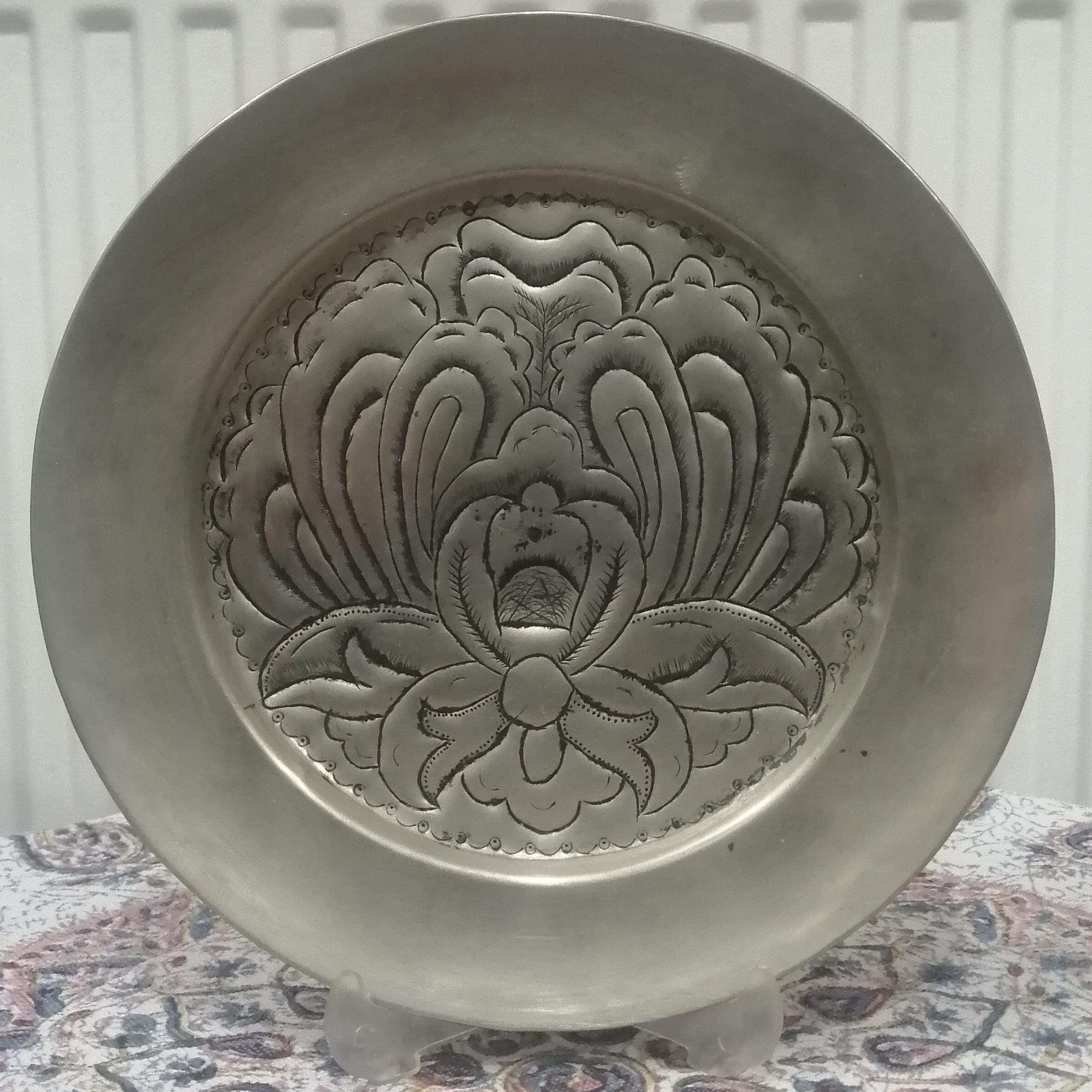 تابلو بشقاب ورشاو قدیمی قلمزده به همراه استند پلاستیکی ارسال میگردد